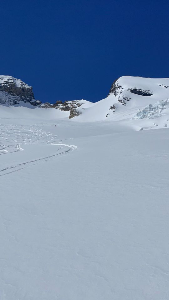 Nach dem gestrigen verschneiten Tag heute Tourstart von der Fridolinshütte um 06:00 bei sternenklarem Himmel. Von der Hütte abfahren und den 1. Eisbruch des Bifertengletschers am linken Rand problemlos umgehen. Beim 2. Eisbruch wenige Meter und einen kurzen steilen Aufschwung und Absatz mit Steigeisen und Pickel. Teilweise Neuschnee auf Blankeis, der nach dem heutigen Tag abgerutscht sein dürfte. Anschließend wieder auf Ski ohne größere technische Schwierigkeiten zum Gipfel. Abfahrt ohne Seil in 20cm frischem Pulverschnee. Der zweite Eisbruch ließ sich problemlos rückwärts mit den Steigeisen abklettern. Bessere Bedingungen hätten wir uns kaum erträumt für diese Tour. Anschließend wieder zur Fridolinshütte auf die Tour anstoßen und runter nach Linthal (dort ab ca 1500m mit Ski am Rücken) .