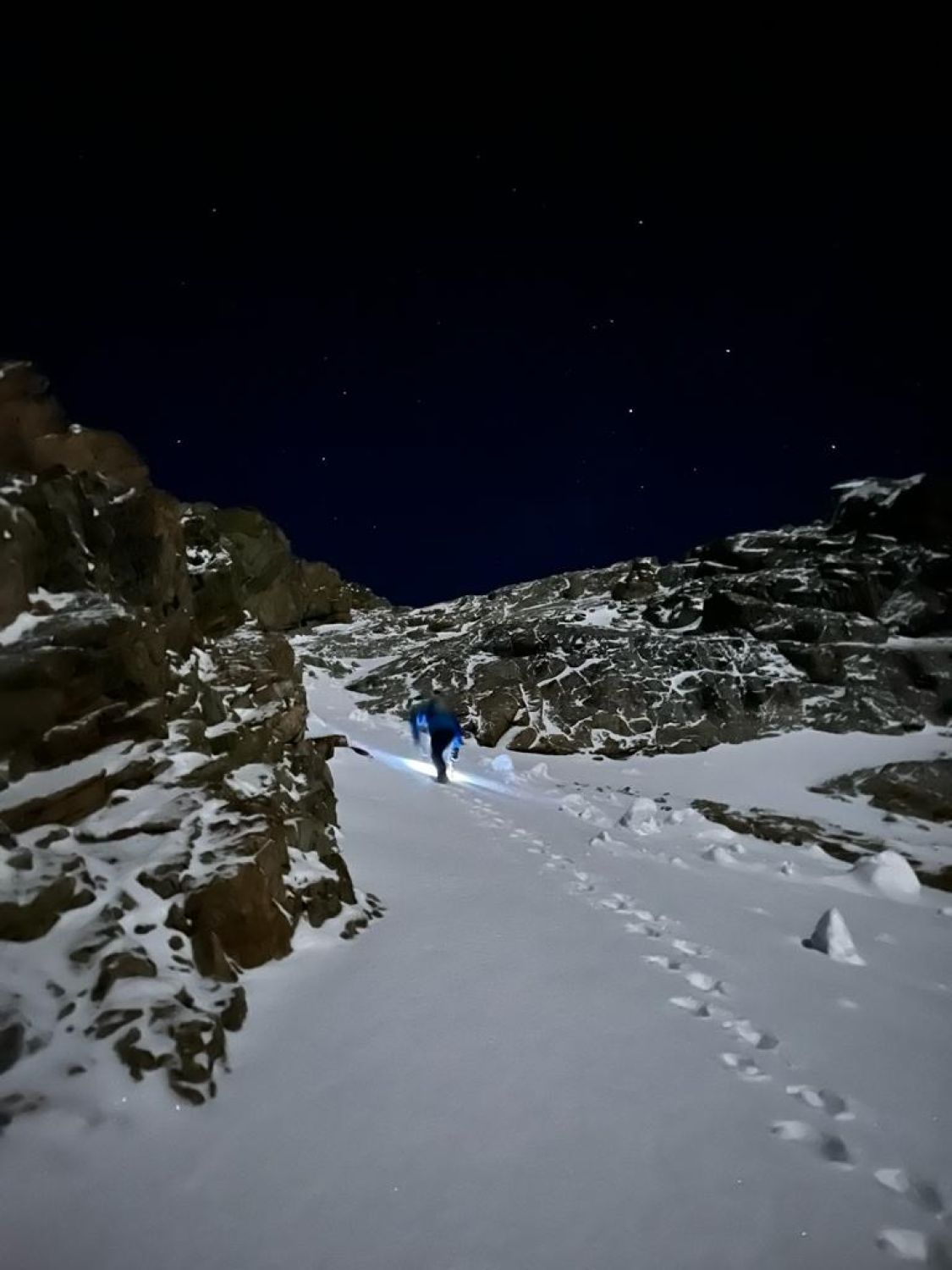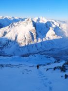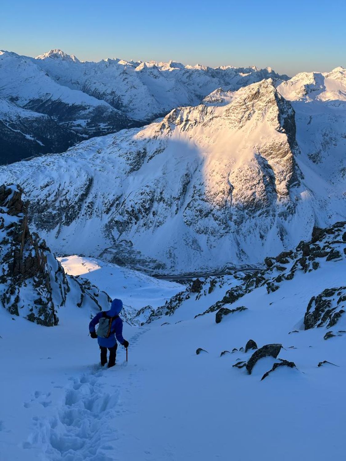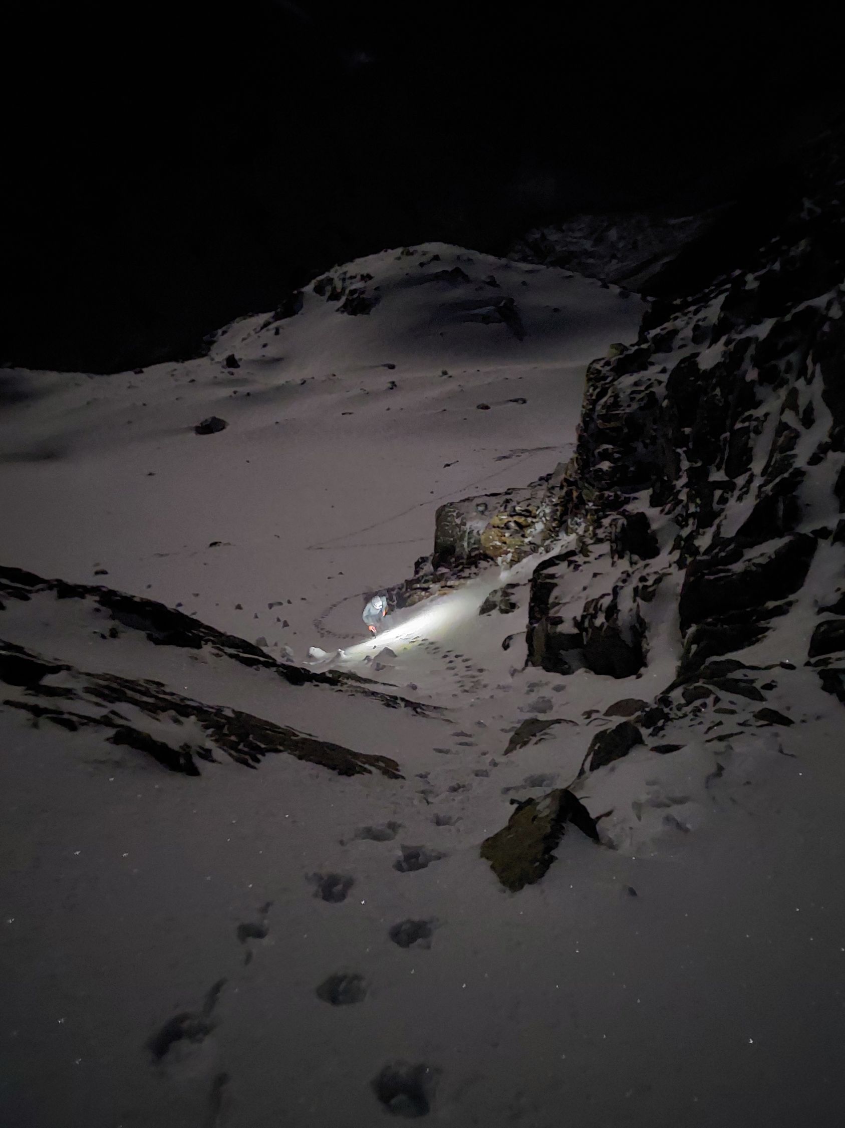 Perfekter Trittschnee, Flanke komplett ohne Steigeisen begangen.