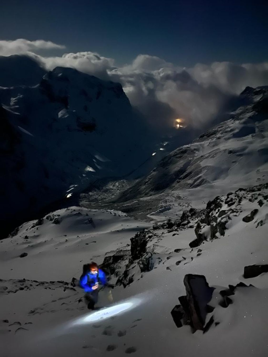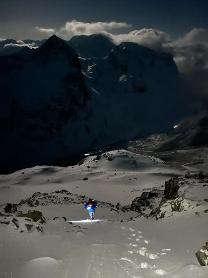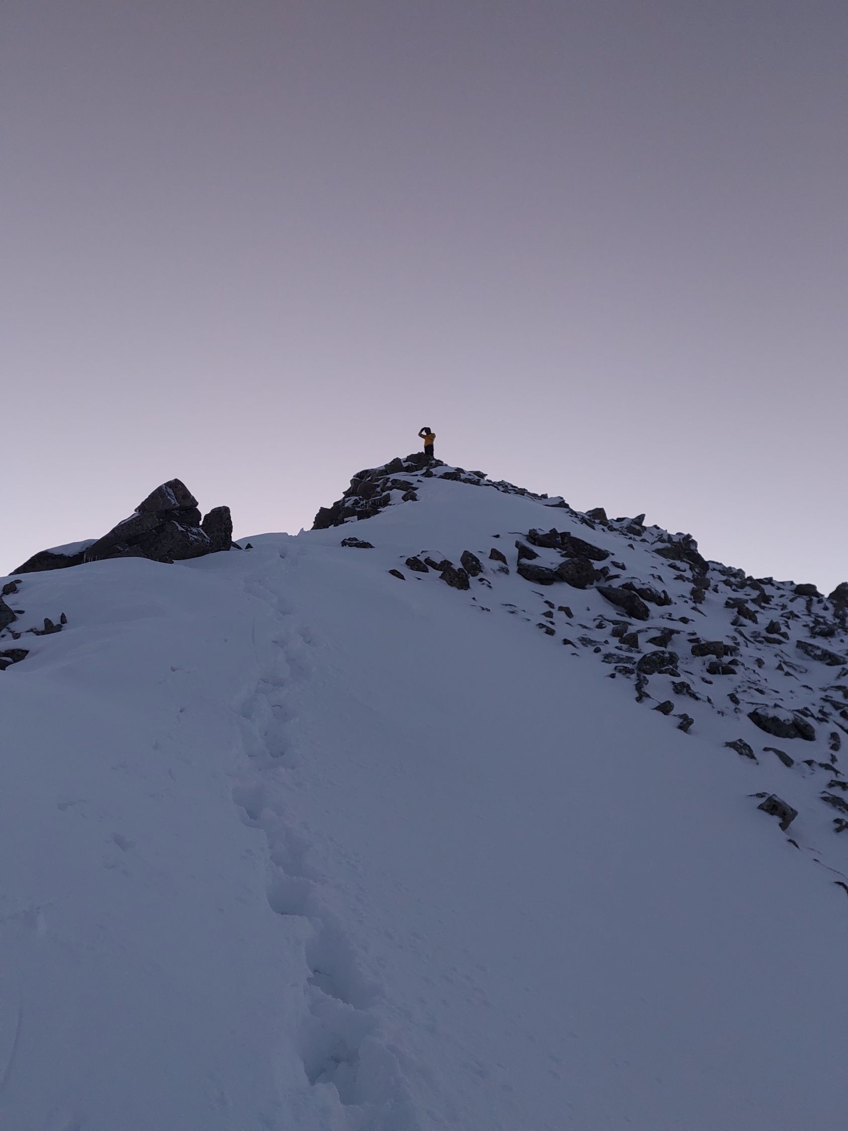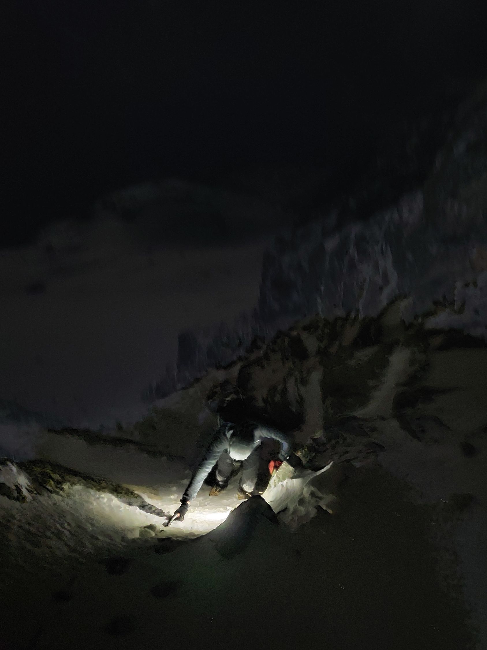 Perfekter Trittschnee, Flanke komplett ohne Steigeisen begangen.