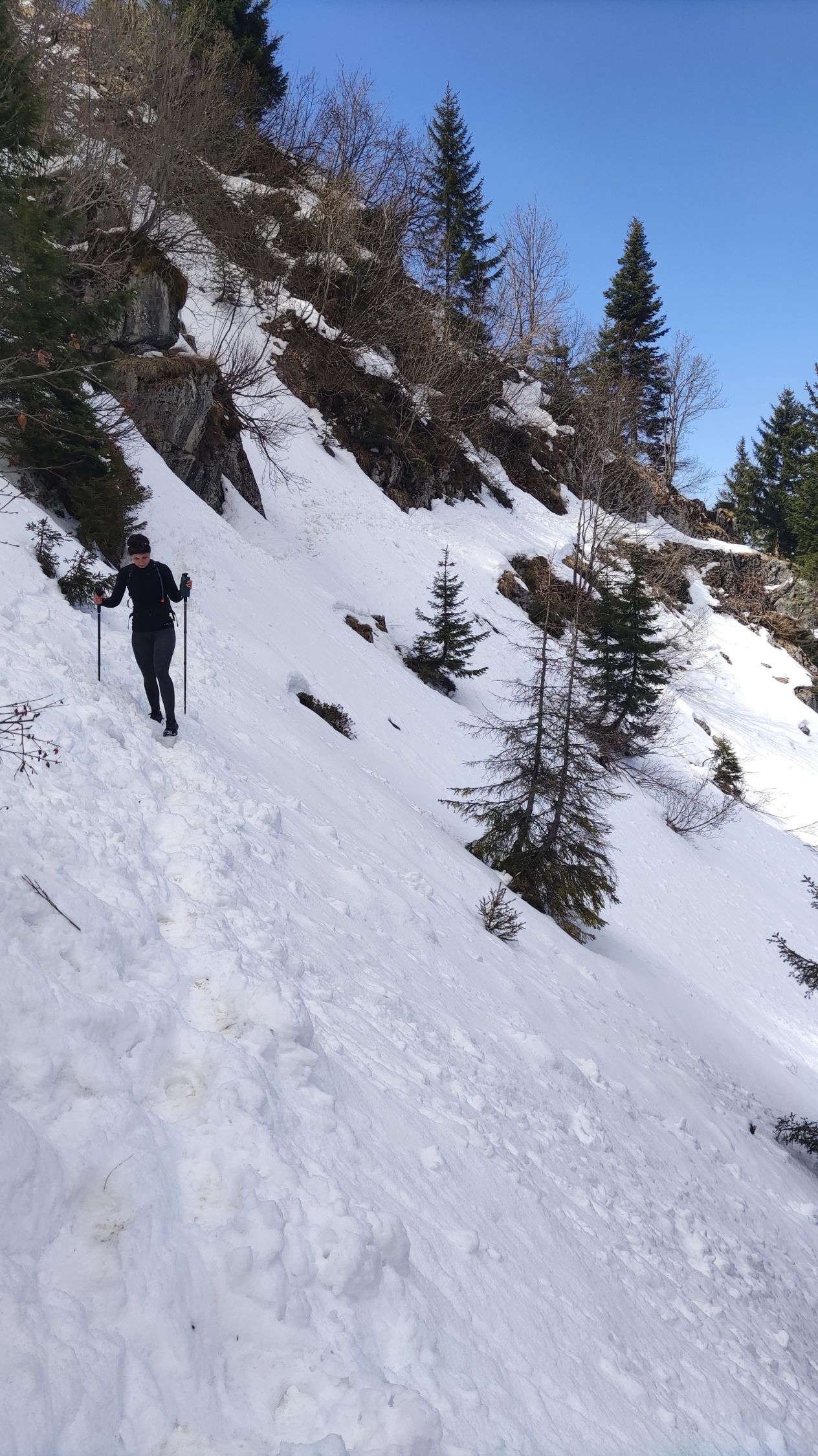 Bis auf 1550 schneefrei, danach die Querung in Richtung Rinderalp noch schneebedeckt.
