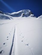 Ab PP bei Realp bis zur ersten Brücke P. 1603 mussten wir Ski tragen, dann schneebedeckt ausser 3 kurze Stellen wo man die Skis abziehen muss. Das Witenwasseren-Tal, wie auch der Witenwasseren-Gletscher ist gut eingeschneit. Keine sichtbare Spalten beim Gletscher. Durchgehend gute Spur. Auf dem (einfachen Geh-)Grat brauchten wir keine Steigeisen oder Pickel, welche wir aber mitgenommen haben. Eine sehr schöne Tour zur europäischen Hauptwasserscheide!