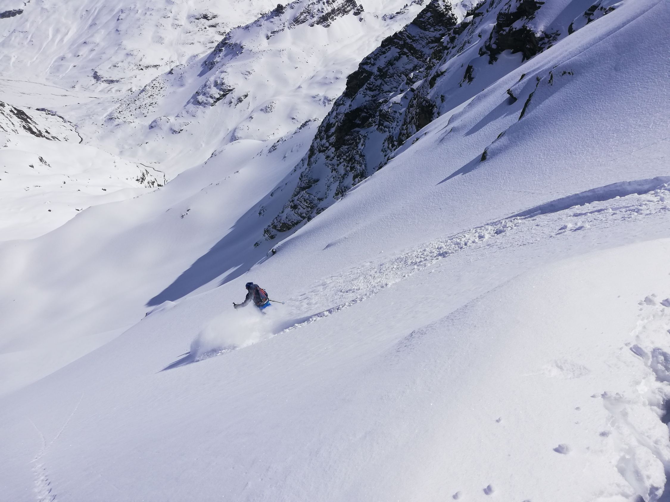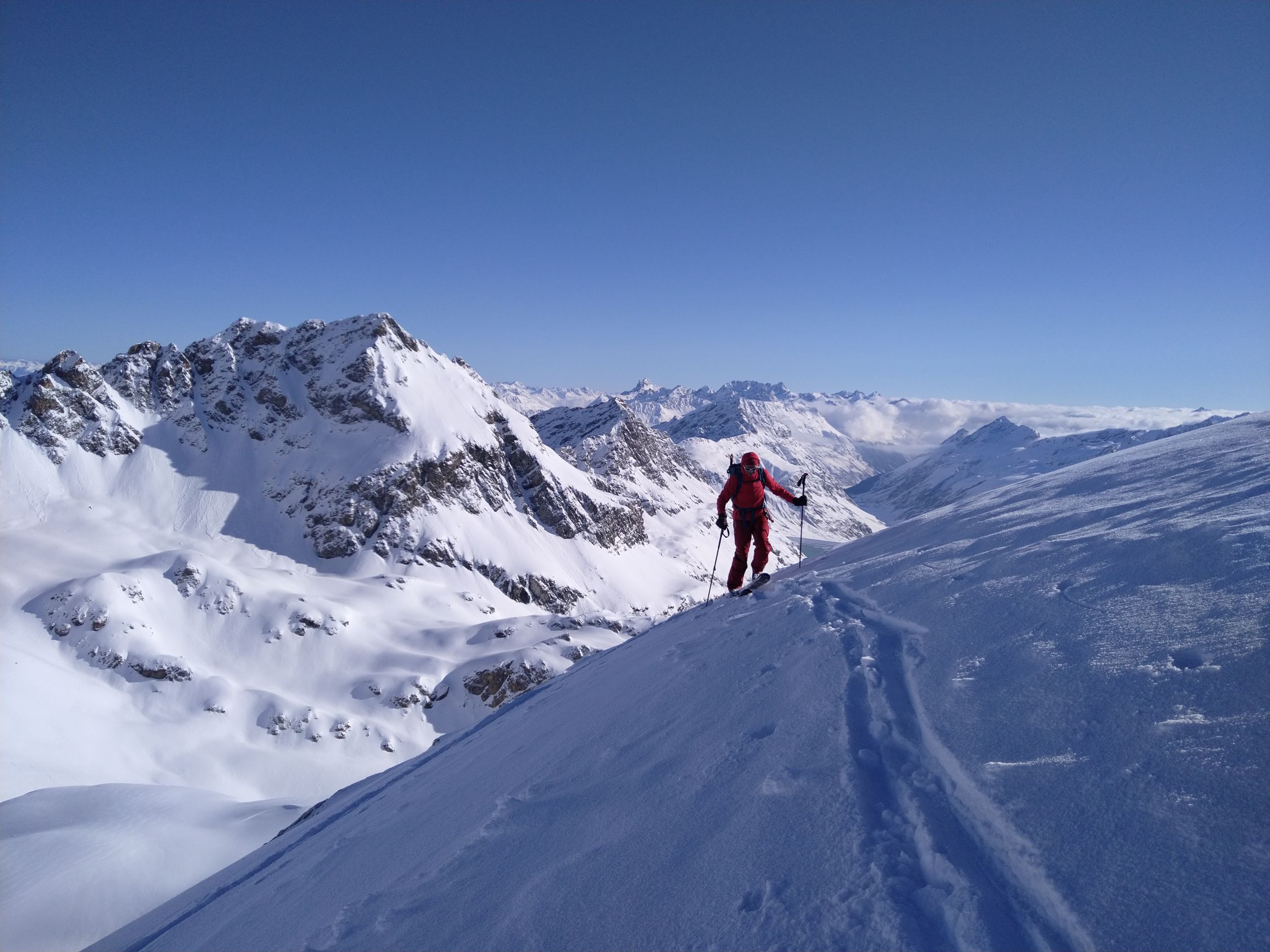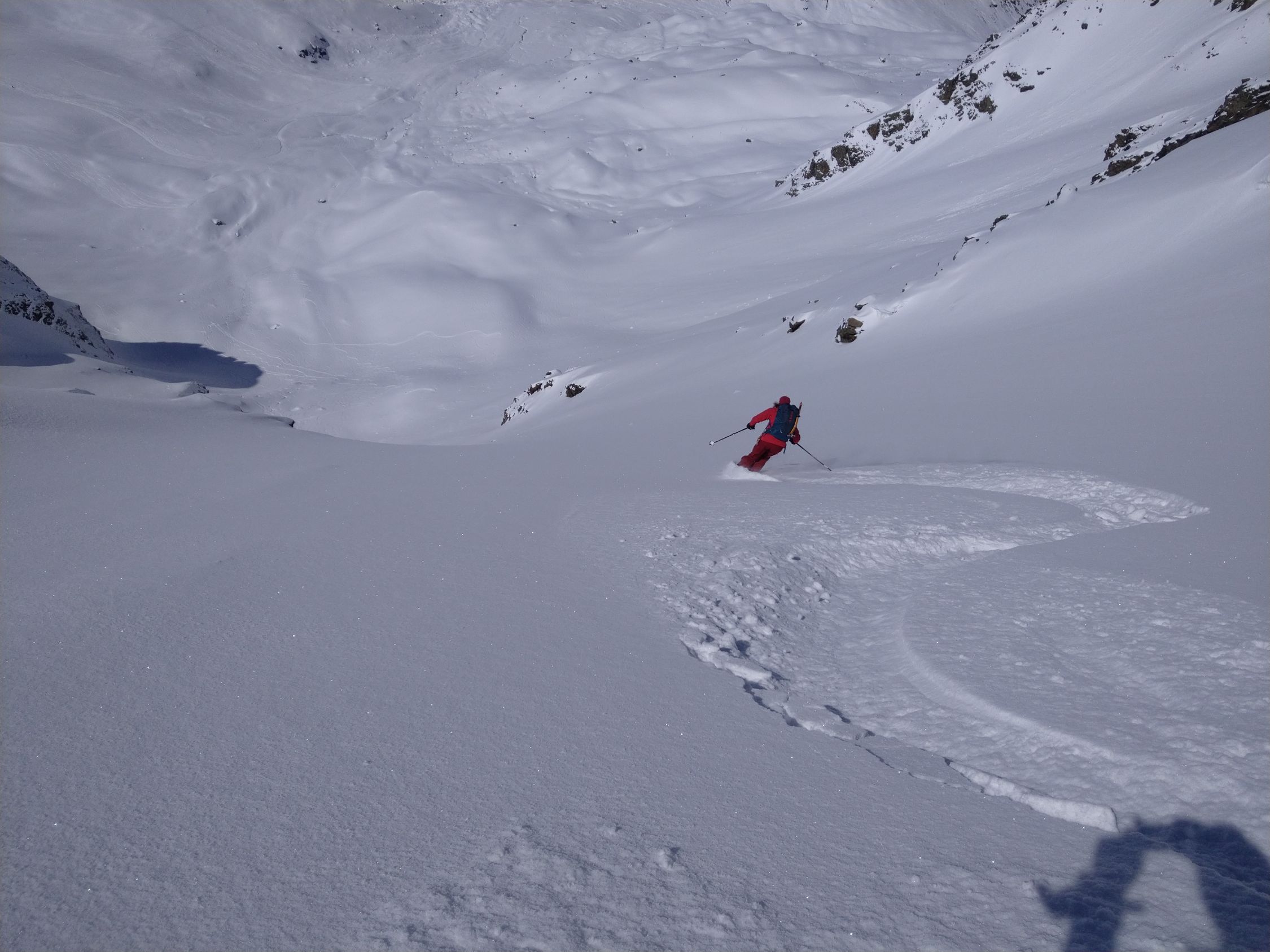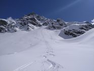 Vom Litznersattel im Anstieg zum Verhupfgletscher oder Glöttergletscher zuerst mit Ski dann in kurzer Stapferei sehr gut machbar. Pulverschnee auf gesamter Route. Lawinensituation/Risiko sehr gering.