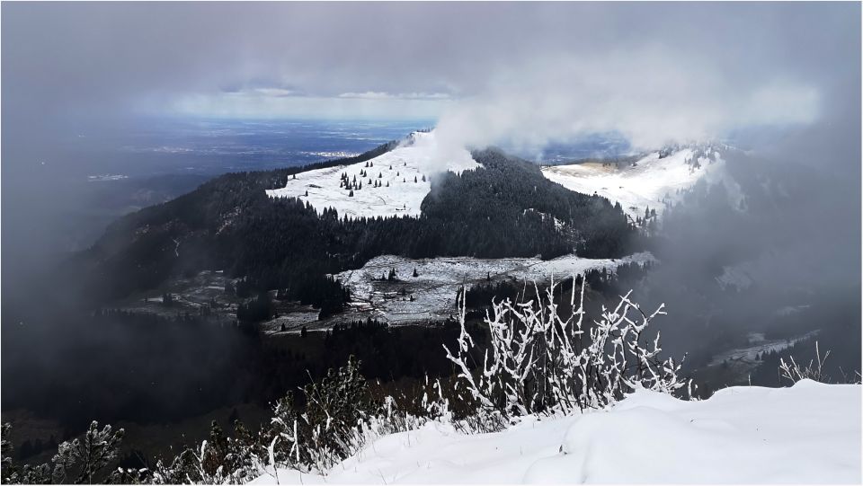 Ansonsten, dichte Wolken, Nebel, dazwischen Sonne. Auf dem Gipfel kaum Wind.
