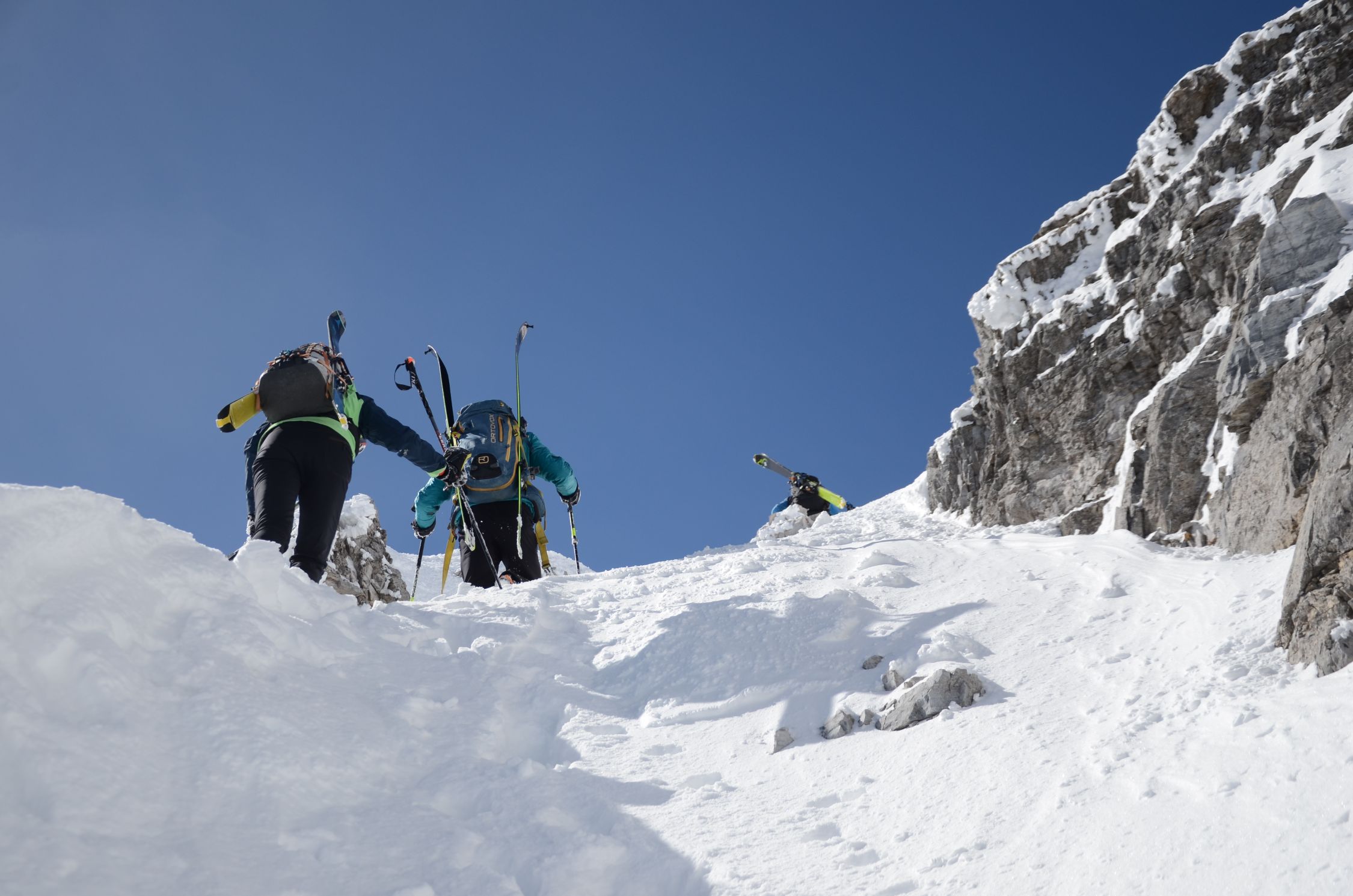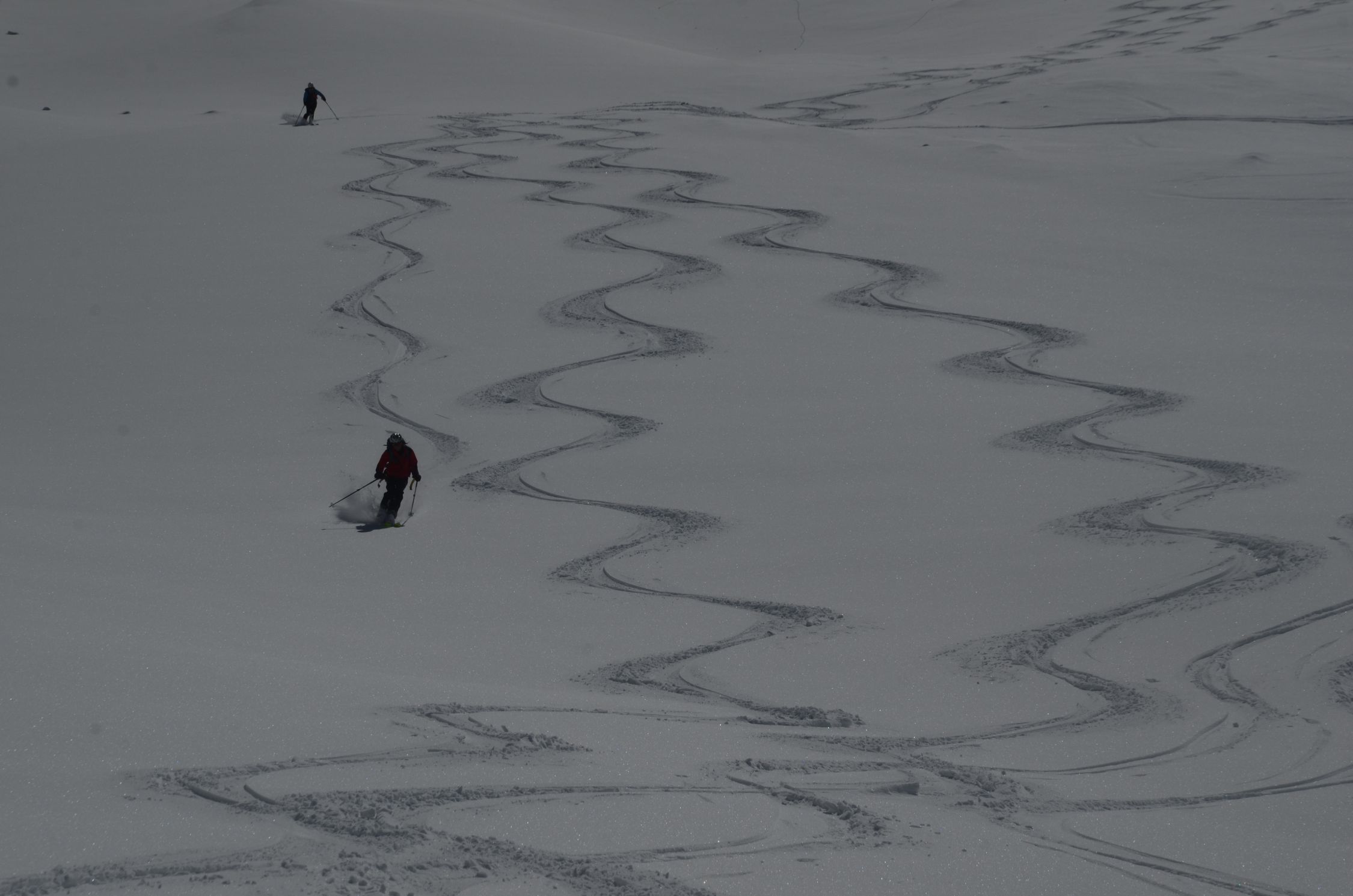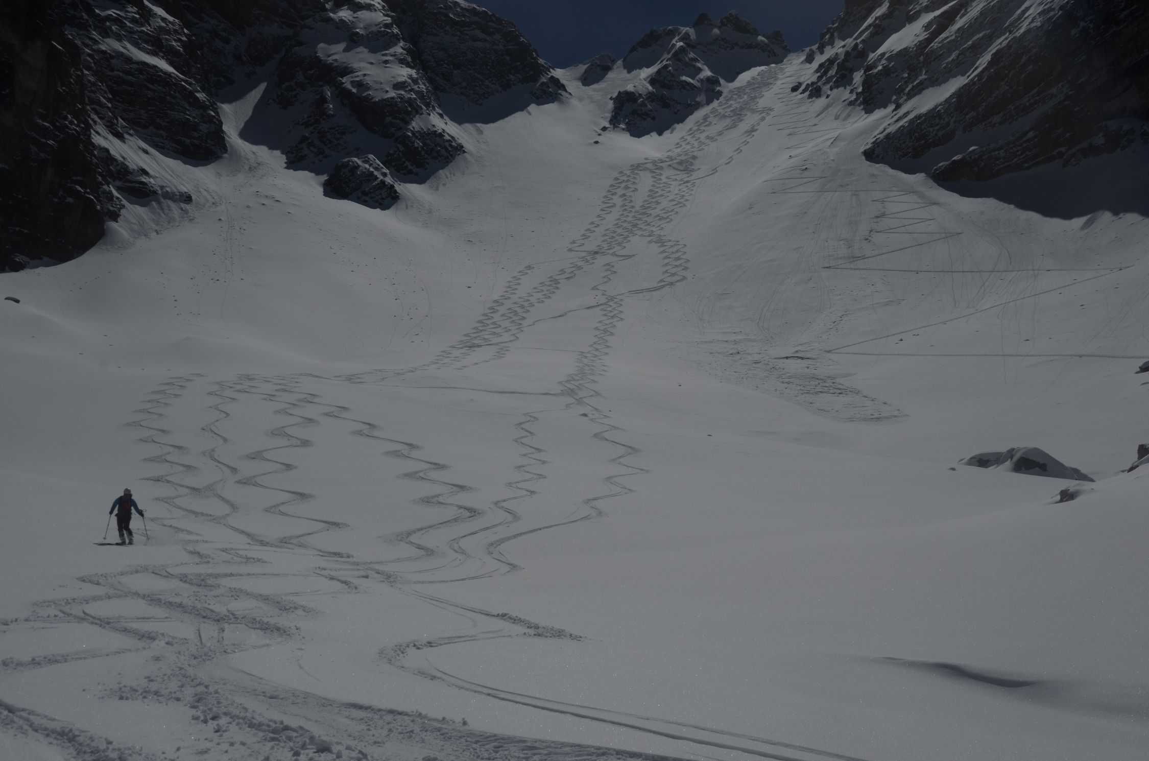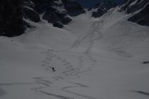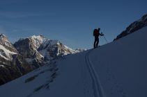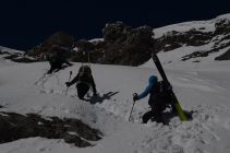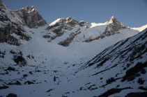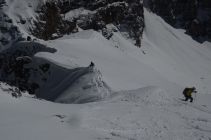 Bis zur Schneetalscharteca. 20-30 cm Pulver und war nicht leicht zu spuren. Ab Scheetalscharte mit Steigeisen über felsiges Gelände. Hier werden die Schi getragen. Weiter oben wieder angezogen. Abstieg die selbe Prozedur und ab der Schneetalschart nur mehr ein Genuss bis zur Forststrasse.