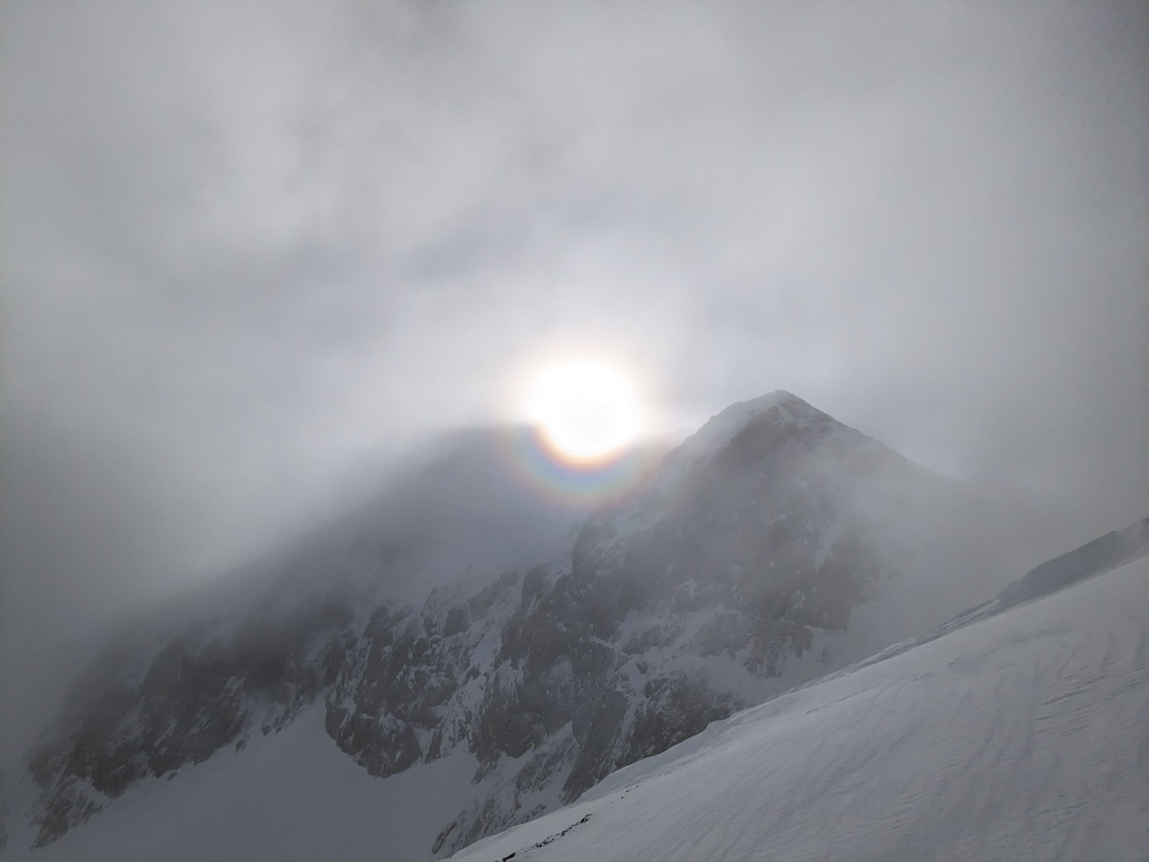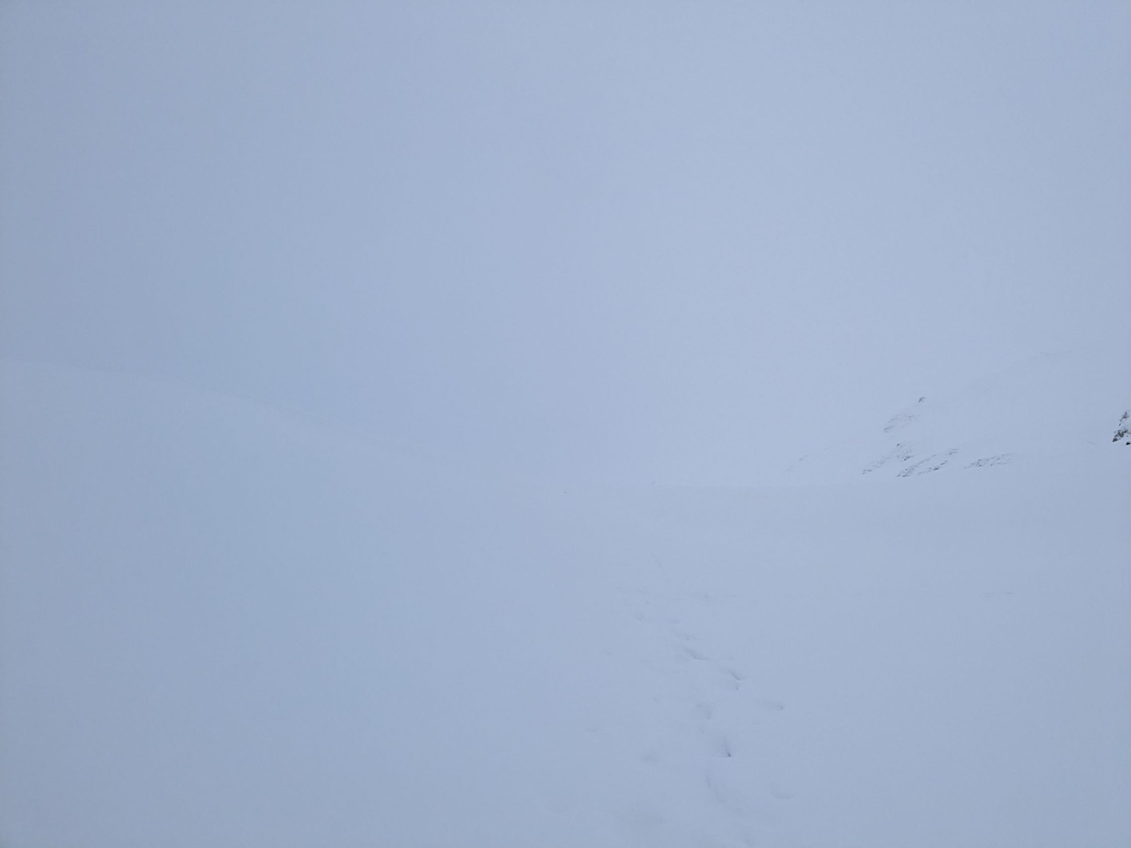 Am 16.4.2023 im Nebel hochgelaufen. Es hat noch geschneit und der Schnee war vom Iffigenalp sehr gut. Es war jedoch ziemlich warm und der Schnee ist sehr schnell Nass geworden.