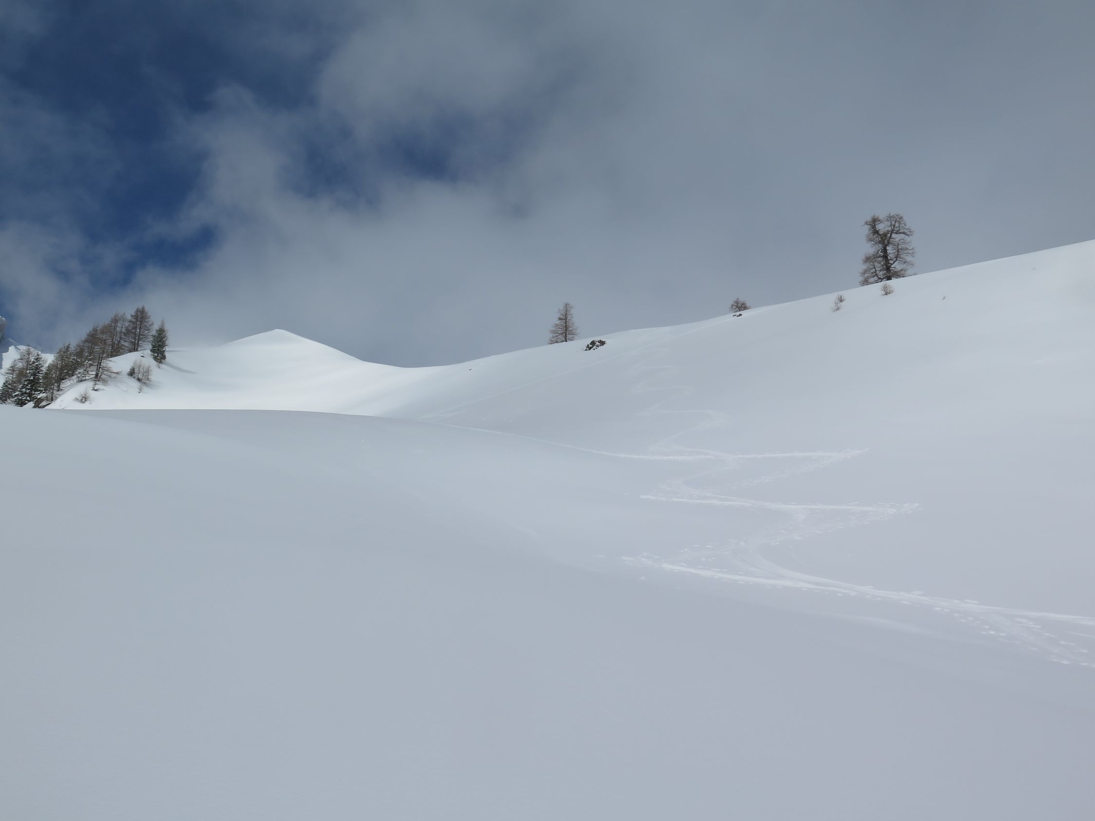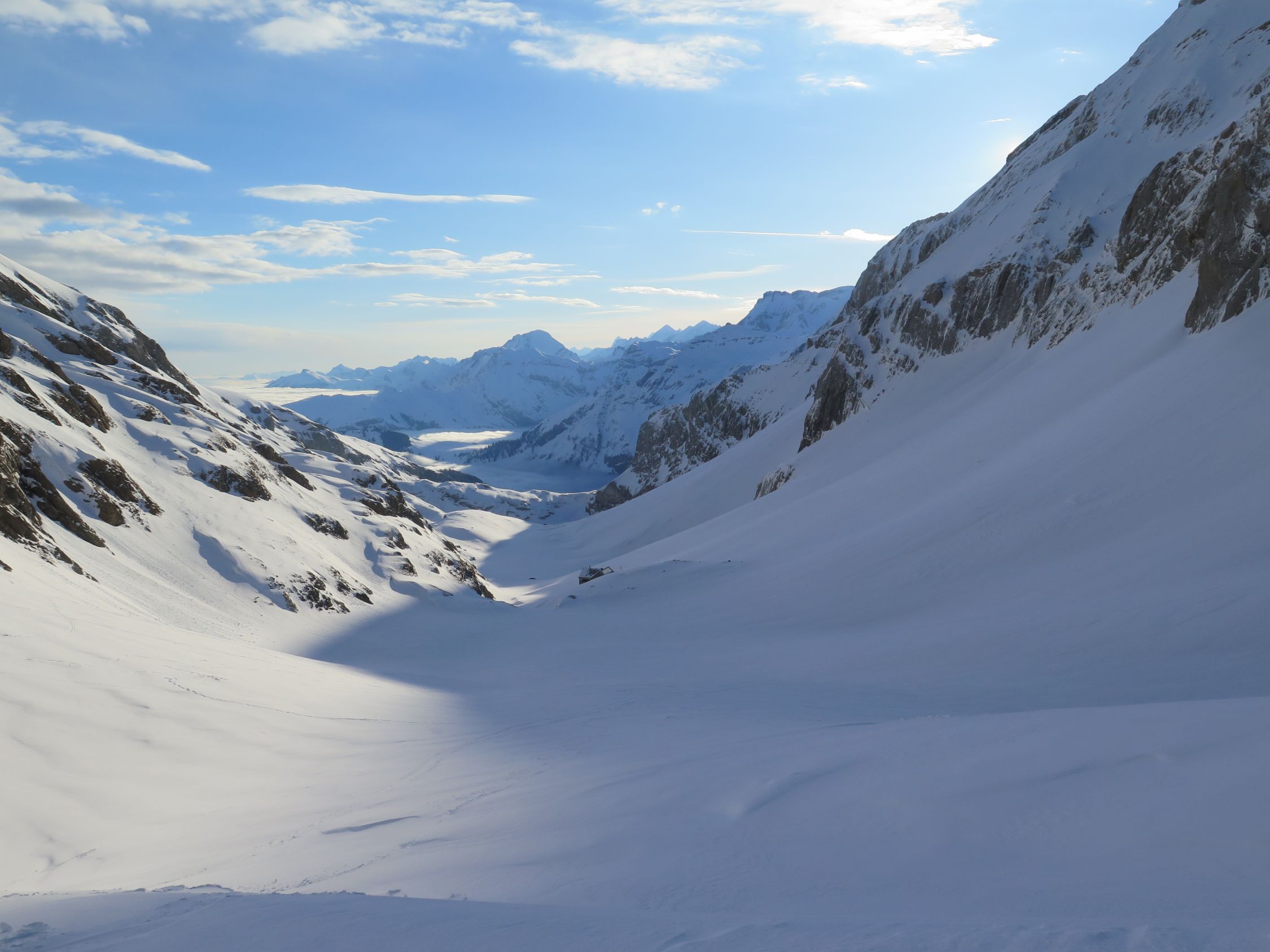 pulverschnee bis kurz vor Hütte. Dannach kurz dünner Bruchharst bis ca. 2200 m.ü.m. Abfahrt zum See je nach expo nasser gut zu fahrender Tiefschnee. Auch zur Iffigenalp gut drehender Nassschnee.