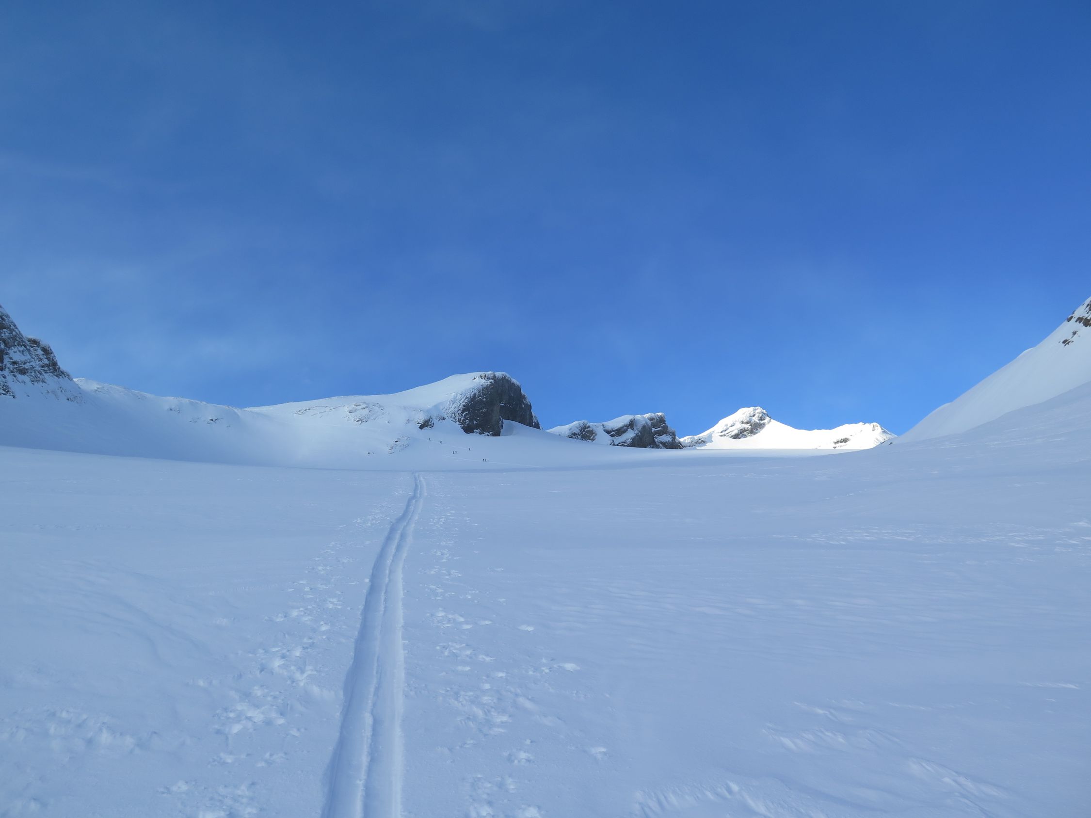 Gestern aufstieg zur Wildhornhütte. Schnee schon ziemlich gesetzt und feucht. Heute auf guter Spur aufs Wildhorn.