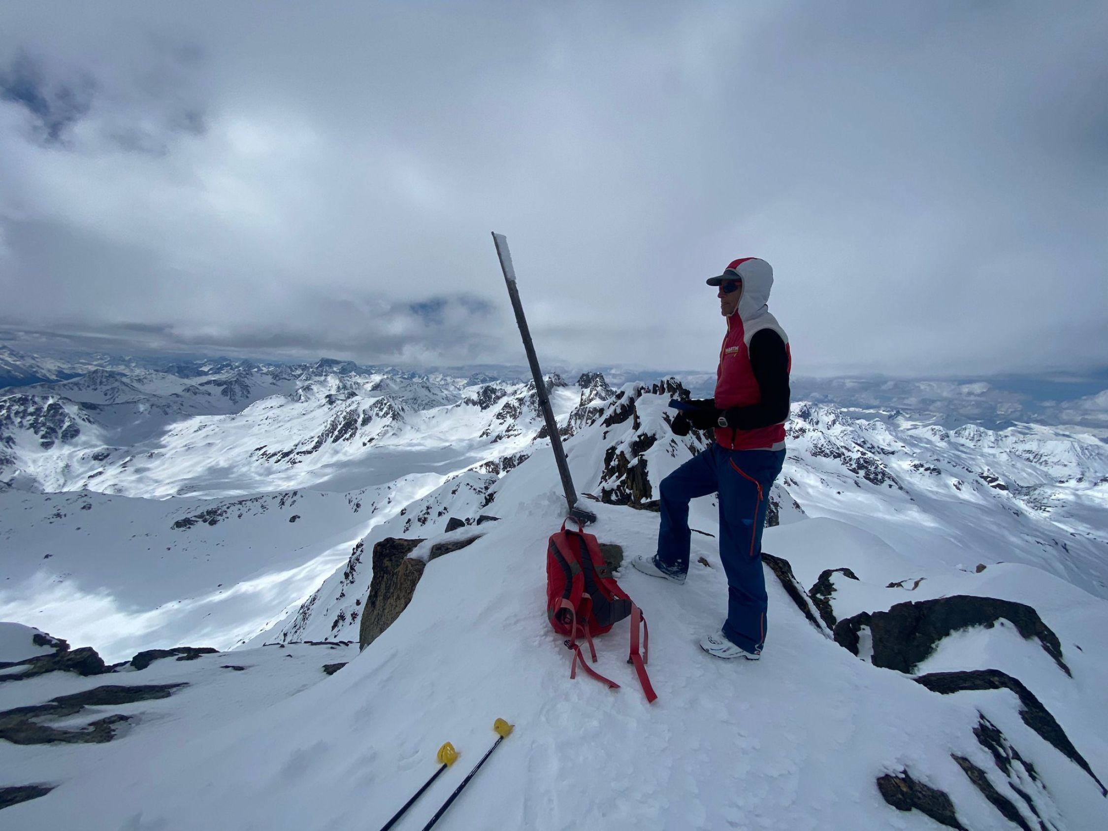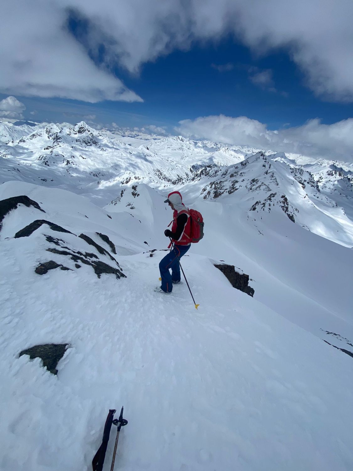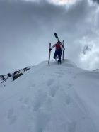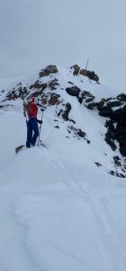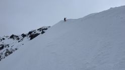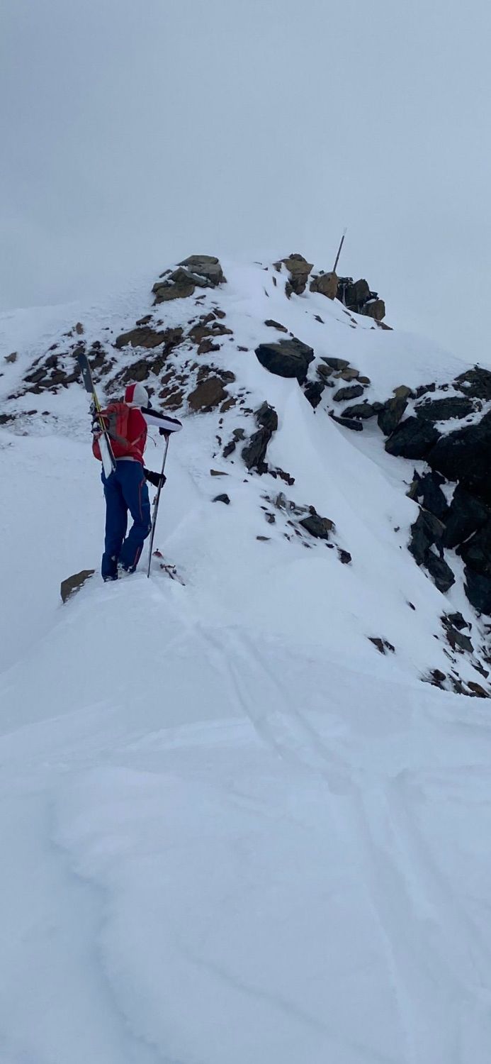 Gipfelgrat viel Trittschnee. Steigeisen und Pickel nicht nötig.