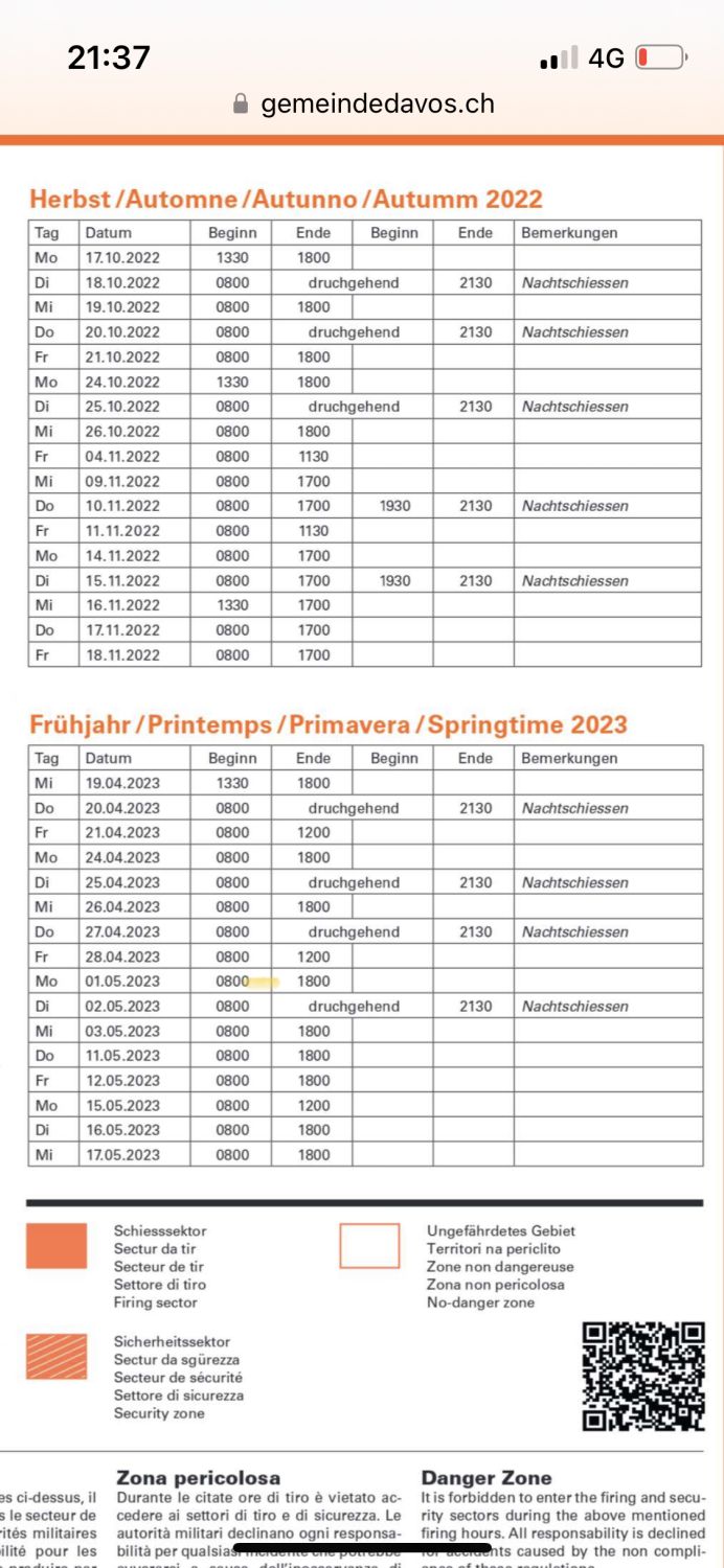 Unbedingt die Schiesszeiten beachten. Entsprechende Publikationen sind im Internet mit den Suchwörtern „Schiesspublikation, Grialesch, S-chanf“ zu finden (siehe auch Bild unter „Persönliches“)