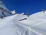 Strasse bis Iffigenalp aper, aber wohl mit Fahrverbot (recht viel los an einer provisorischen Seilbahn). Mit dem Velo ging es aber bis zur Iffigenalp (die am Nachmittag dann sogar offen hatte). Um 9.00 losgegangen, etwas spät, Hang unterhalb Iffigensee war schon leicht weich, unten aber hart und rutschig. Gute Spur bis zum Gipfel. Ab Mittags stärkere Quellwolken, die auch den Gipfel ab und an einhüllten. Abfahrt passabel, oben schöner Pulver (bis ca. 2500 m unterhalb vom Chilchli), dann feuchter werdend, bis zum Iffigensee noch gut drehend, unterhalb Murks, sehr nasser Bremsschnee bis zur Iffigenalp (Abfahrt vom Gipfel um 13.00), daher früh losgehen.
