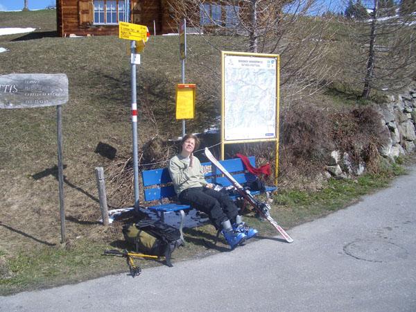 Sehr leichte, beliebte Tour. Mit Zug nach Schiers und dann mit dem Postbuesli bis Stels Mottis (1480m). Von dort auf die Nordseite ausweichend dem Ruecken entlang auf den Gipfel. Abfahrt nach Norden nach St. Antoenien.