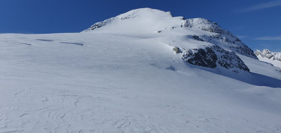 Gipfelhang viel Triebschnee und Gipfelgrat wächte vorhanden daher bis Skidepot. Abfahrt auf dem Gletscherplateau press Pulver ab 2900 feinster Pulver.