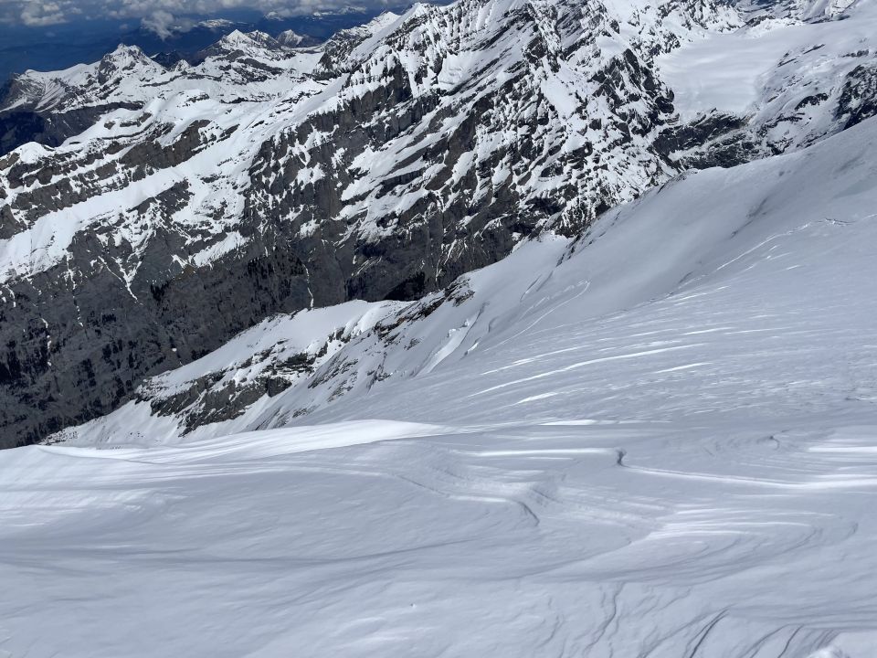 Ohne Harscheisen über Zackengrat bis Gipfel ohne Ski auszuziehen, daher ausgezeichnet. Merci den wenigen Vorspurern (gestern ein Einzelner und heute Zweiergruppe und Einzelner).