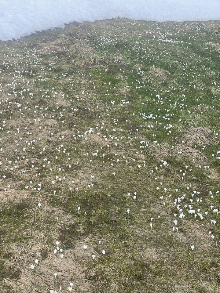 Heute war es gar nicht so einfach, wenn man eine Skitour machen wollte. In den Berner Voralpen morgens noch Regen, Spilau fuhr nicht, am Gotthard Verkehrsstau und überall viel zu warm und also lawinengefährlich. So kam ich erstmals in die Flumserberge, die ich bis heute nur aus dem Gipfelbuch kannte. Den Aufstieg zum Maschgenkamm musste ich erst ein bisschen suchen, aber dann ging alles bestens auf der alten Kunstschneepiste von Tannenbodenalp aus. Das Wetter blieb freundlich, Vogelgezwitscher inklusive Kuckuck, haufenweise Krokusse, kurz: ein schöner Tag in den Bergen. Nach gemütlicher Rast oben dann die Abfahrt: oben klebrig auf dem durchnässten Neuschnee, danach prima bis ganz unten auf dem Kunstschnee. Ich fange an, das Zeug zu mögen…