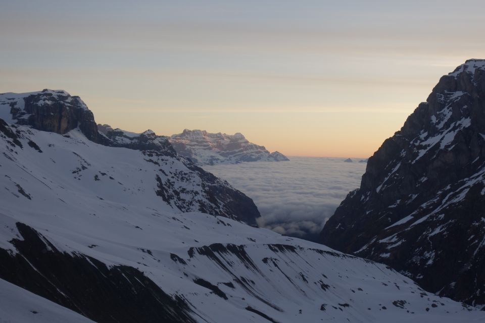 Start um 5:00 von der Fridolinshütte. Dank Abstrahlung tragender Deckel. Erster Bruch wird rechts umgangen. Leider ist gestern die Ostwandlawine runter gekommen, entsprechend 20min Skitragen durch Lawinen Kegel - runterwärts kann man diesen gut umfahren. 2. Bruch gut einigeschneit, aber die Steilstufe sind nur wenige abgefahren. Ab 2.Bruch griffiger Deckel bis Gipfel. Um 9 war der Gipfel offen um 10:30 zu. Wir haben gewartet und wurden belohnt, Tödi war 11:30 Wolkenfrei. Abfahrt geht gut bis Waldgrenze. Aktuell fährt bis Hintersand kein Taxi, erst ab Tierfehd, besser nachfragen vor Anreise. Wir sind Tags zuvor über Gemsfairen/Planurahütte zugestiegen, ging ganz gut, aber war um 2000m recht sumpfig, wegen fehlender Abstrahlung.