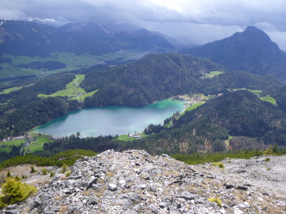 Der Wilde Kaiser ist noch gut verschneit. Insbesondere seine Nordseite. Der Zettenkaiserkopf ist der westlichste Berg vom Kaisergebirge. Im Gegensatz zu den vielen Felsgipfeln im Wilden Kaiser, ist der Zettenkaiserkopf flach und bewaldet. Hier beginnt der Westgrat zum Zettenkaiser.