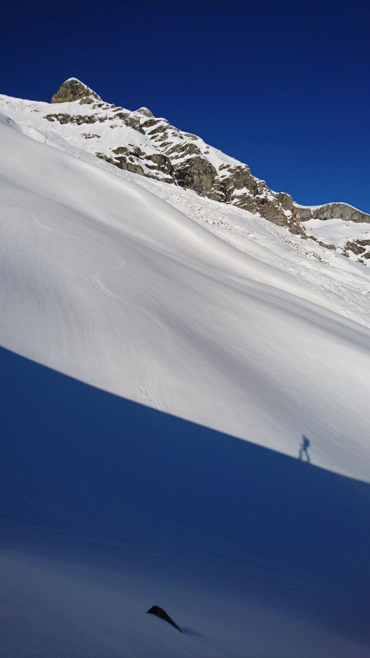 Bei Griesalp geparkt, Strasse von dort noch teils vereist. Durchgängige Scheedecke ab Oberi Bundalp aufca 1800. Sommerweg zur Blümlisalp Hütte teils mit unschönem Triebschnee, Hohtürli ist wohl besser. Rampe zur Wyssi Frau pulvrig, teils mit leichtem Deckel, teils recht griesiger Schnee. Kleine Abgänge in der Abfahrt. Gipfelaufschwung ist gut eingeschneit. Allerdings vermutlich jetzt noch sehr sumpfig und locker auf den Platten. Schon zuvor auf dem Grat etwas heikel da teils gepresster Triebschnee. Dort umgekehrt.