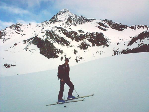 Der Samstagmorgen war bewölkt und windstill bei angenehmer Temperatur. Nach einem köstlichen Frühstück starteten wir von der Hütte sehr zuversichtlich und kamen zügig voran. Es machte riesen Spass, die ideal geneigten Hänge auf dem recht griffigen Untergrund hochzusteigen. Schon bald hatten wir über das Zwiselbachjoch den Gletscher erreicht und passierten nun in respektablem Abstand eine mächtige Spaltenzone. Etwas eingenebelt und sogar früher als geplant, erreichten wir frohen Mutes den Gipfel des Grießkogels. Es war angenehm mild und nahezu windstill. So saßen wir noch lange oben, in angenehmer Gesellschaft und plauderten mit unserer Damenrunde, mit der wir es am Vorabend auf der Hütte so lustig hatten. Bei der Abfahrt war dann leider ziemlich schlechte Sicht. Ein bischen schade. Sonst wär's ein Traum gewesen, die schönen Hänge zur Hütte hinunterzublasen. Über weite Strecken hatten wir eine tragfähige Schneedecke, die schon ganz leicht auffirnte. Oben zum Teil noch pulverähnlich, jedoch schon recht verfahren. Trotzdem war's noch ganz OK und wir kehrten zufrieden wieder zur Hütte zurück. Dort wollten wir uns gar nicht mehr trennen, von unseren Feundinnen, mit denen wir es in den 2 Tagen so nett und lustig hatten. Ganz schöne Grüsse von den Xibergern an Annelies, Elisabeth und Gitti !!! Wir kommen bestimmt wieder, ins schöne Tirol !!!