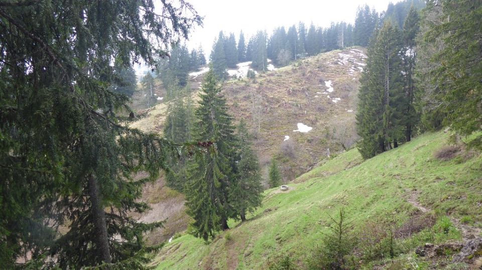 Wetter grau und verhangen, null Fernsicht. Bis Siplinger noch trocken auf Rückweg kurz nach Mittag kam der erste Schauer. Ab Unter Wilhelminealp zunächst direkt S-Flanke zum Grauen Stein hoch (Weglos und Viehspuren). Natürlich alles feucht aber machbar. Übergang zum Siplinger über Tennenmoos dort sind noch tragende Schneefelder gut zu queren. Zum Siplinger hoch bis Grat alles aper, oben zum GK wieder div. tragende Schneefelder.