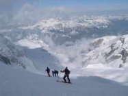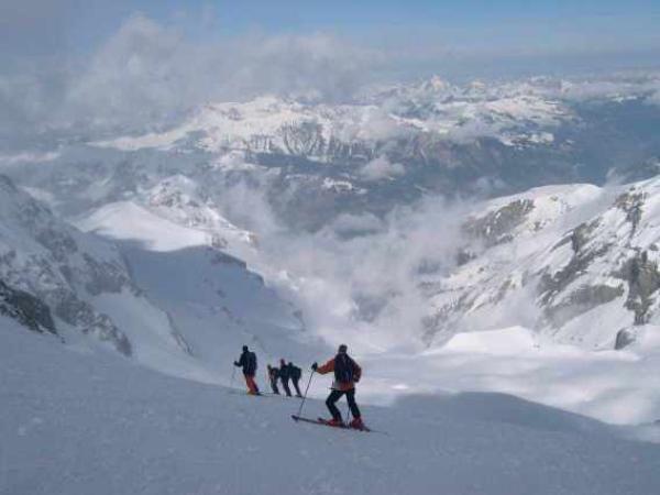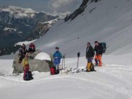 3cm Neuschnee, darunter windgeprägte, mehr oder weniger verharschte "Unterlage". Gletscher überall gut eingeschneit, N-Brüche bei guter Sicht unproblematisch. Wenig Triebschnee im N-Hang.