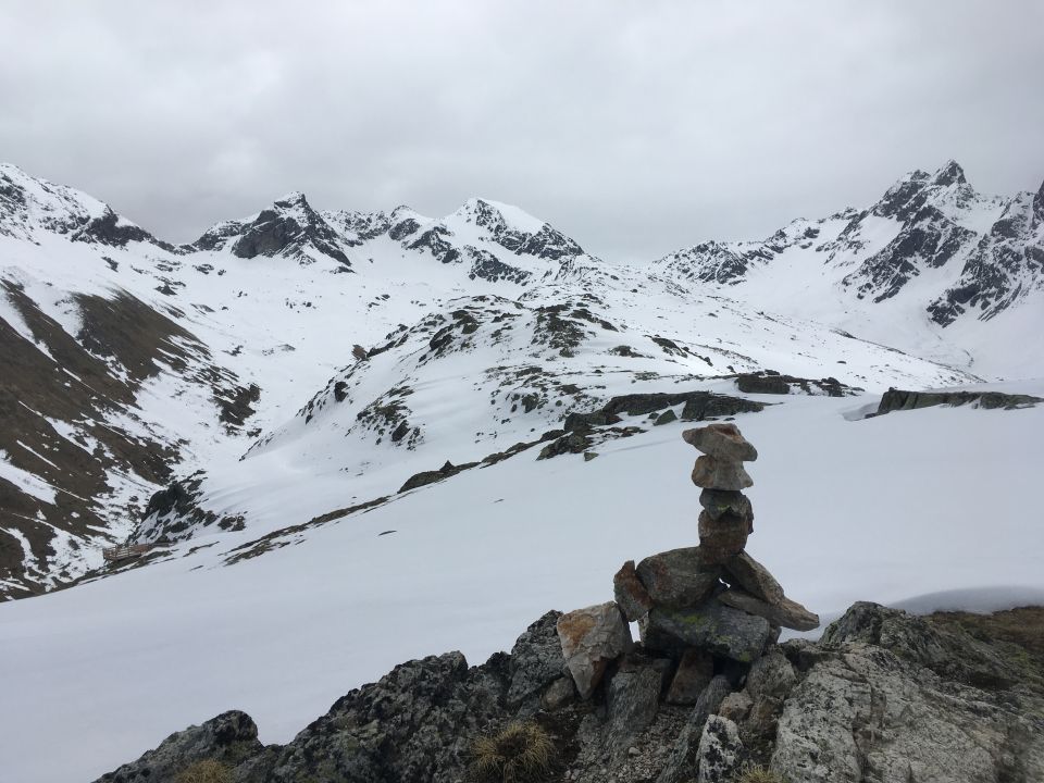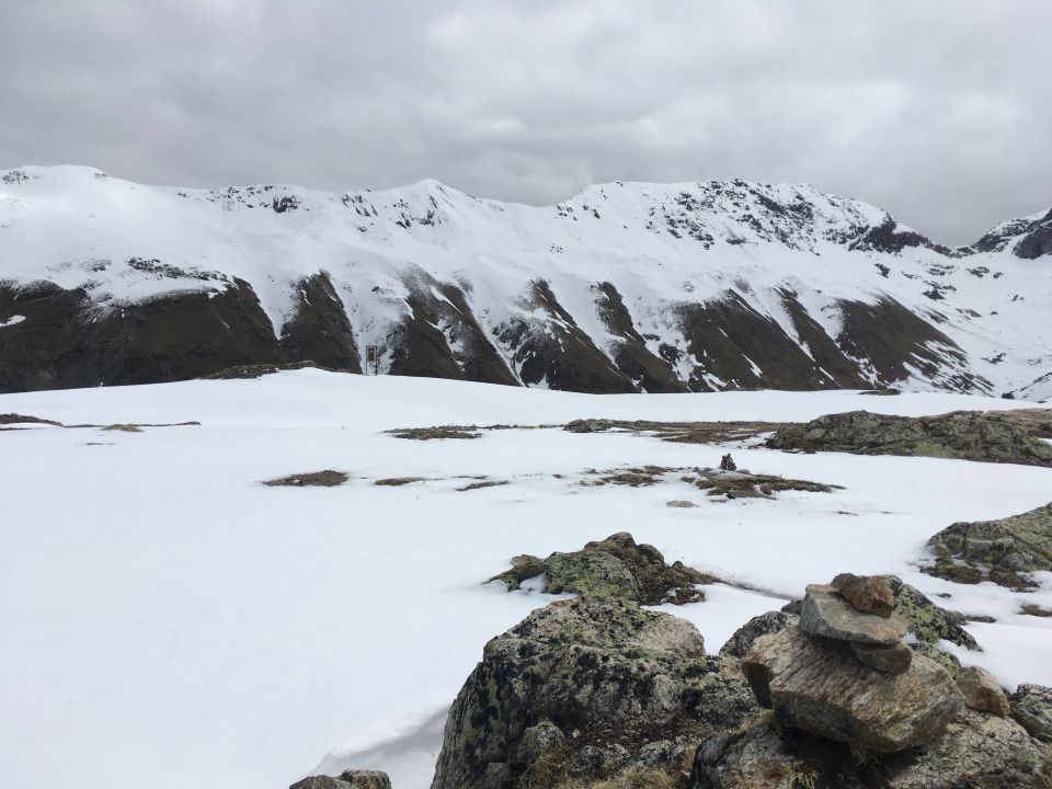 Rundtour hoch über Samedan auf den bekannten Aussichtsberg. Start Samedan 8.30 Uhr, 3 Grad, Nordwind, leicht bewölkt. Bin den sehr schönen markierten Wanderweg hoch bis kurz vor der Bergstation 2453 m. Im oberen Teil noch Schnee auf Weg und einige Schneefelder zum traversieren. Guter Trittschnee. Vor der Bergstation dann durchgehend Schnee und weglos bis zum Gipfel Punkt 2568 m Muottas Muragl (T4 bei diesen Bedingungen. Stöcke hilfreich). Bin dann die Schlittelpiste runter nach Punt Muragl (T2). Bis 12.30 Sonne, nachher leider bewölkt.
