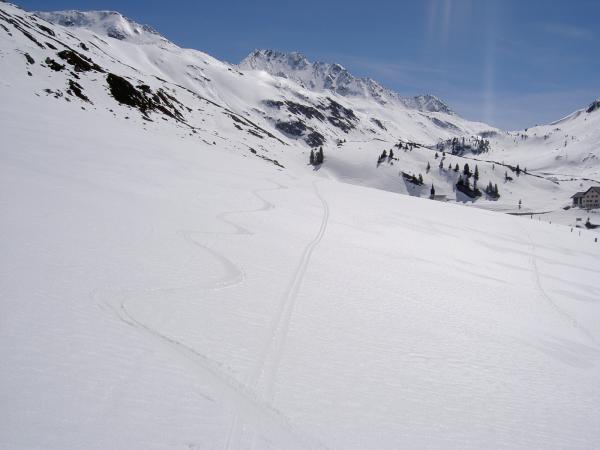 Flüelastrasse ca. 1880 m direkt via Mattjischtälli aufs Pischahorn. SE-Abfahrt gegen Vereinatal bis Höhe 2400 m. Aufstieg auf Verborgen Isen (P. 2844 m) und Abfahrt gegen Tschuggen zum Auto.