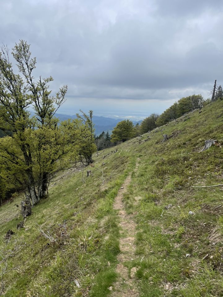 Direktaufstieg Hau Belchen Süd immer wieder abwechslungsreich und teils alpin. Vegetation noch nicht der Rede wert, kaum schöne Flora. Oben teils neblig und kühl, Fleece gute Idee. Unterwegs kaum Leute, ab Belchenhaus viele. Abstieg zur hohen Kelch und dort untendran, am gewohnten Ort, fünf Gemsen. Spätestens dann war meine Stimmung gehoben, anfangs fühlten sich die Trekkingschuhe falsch an.