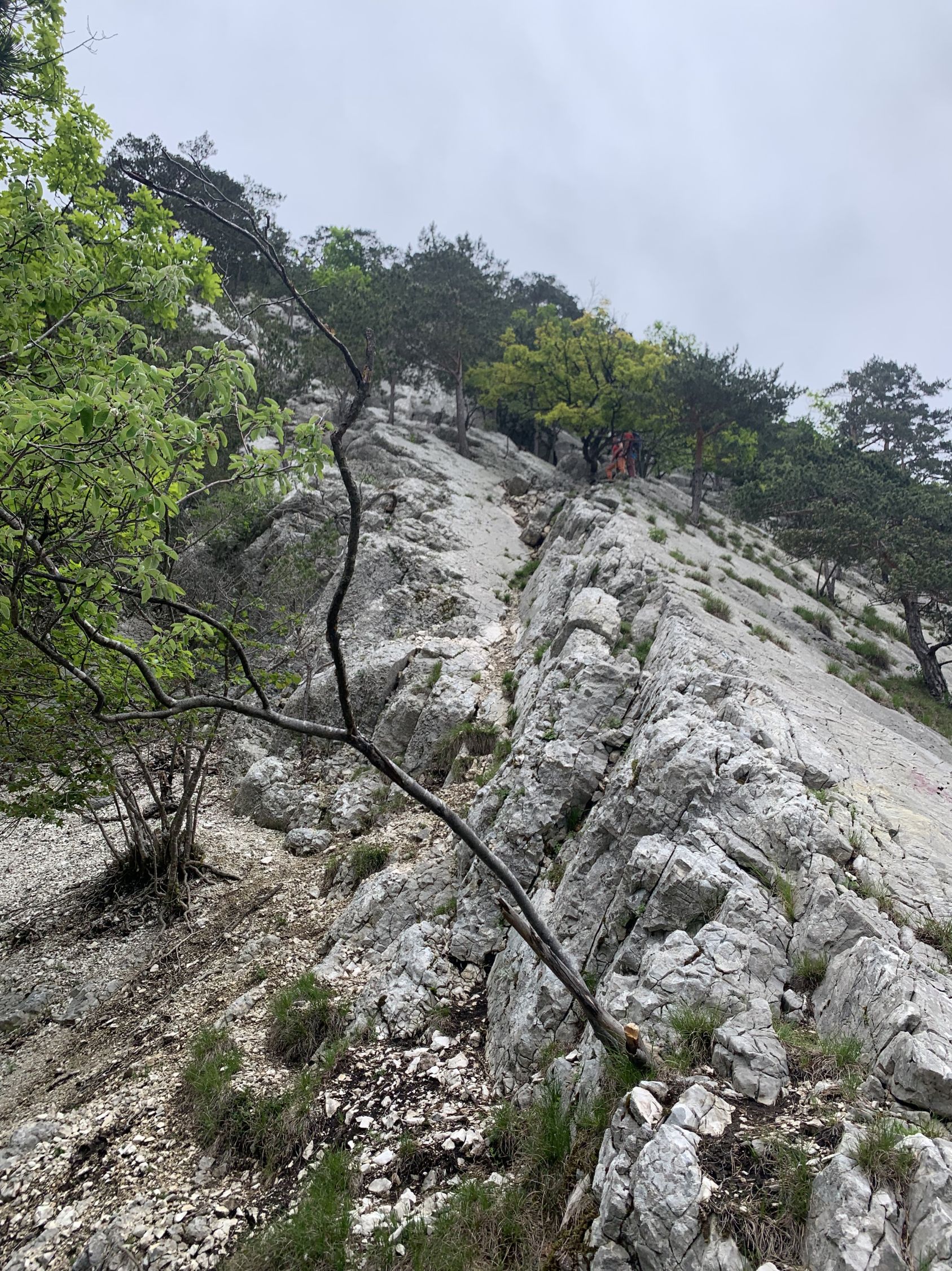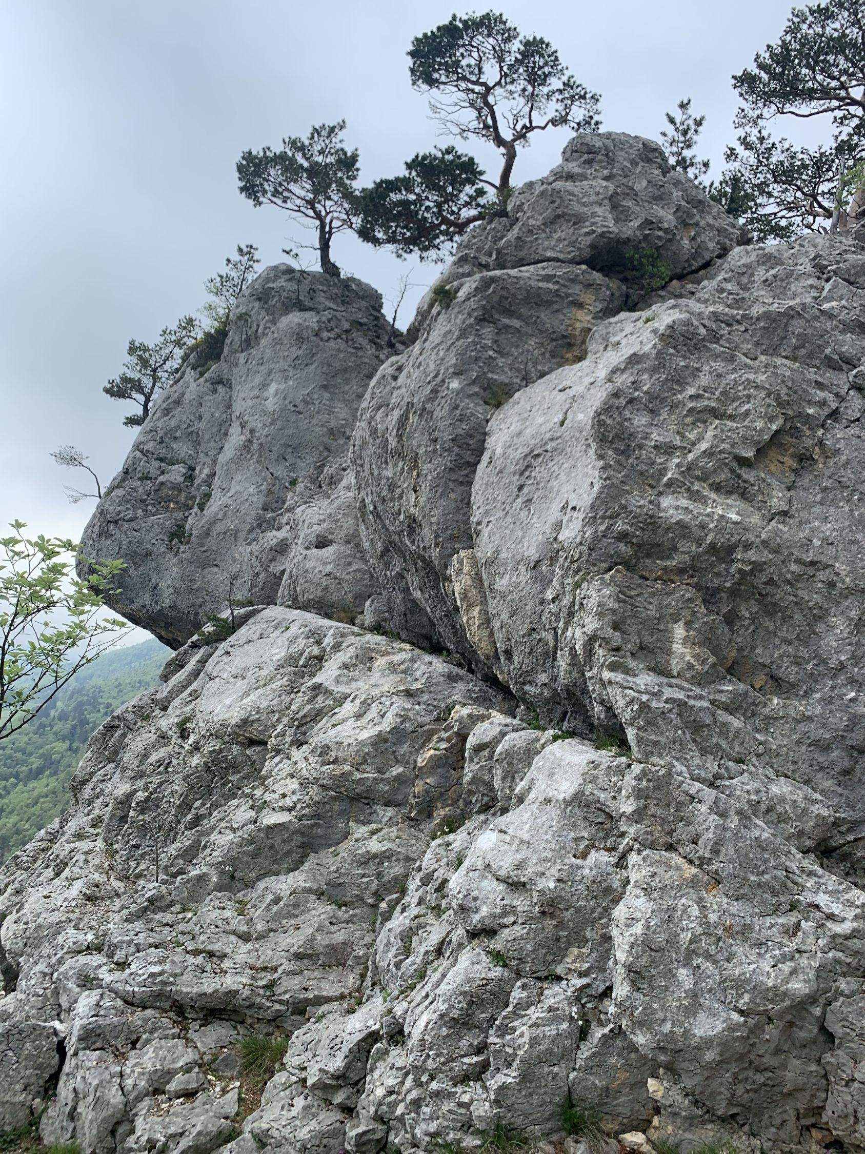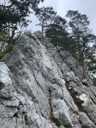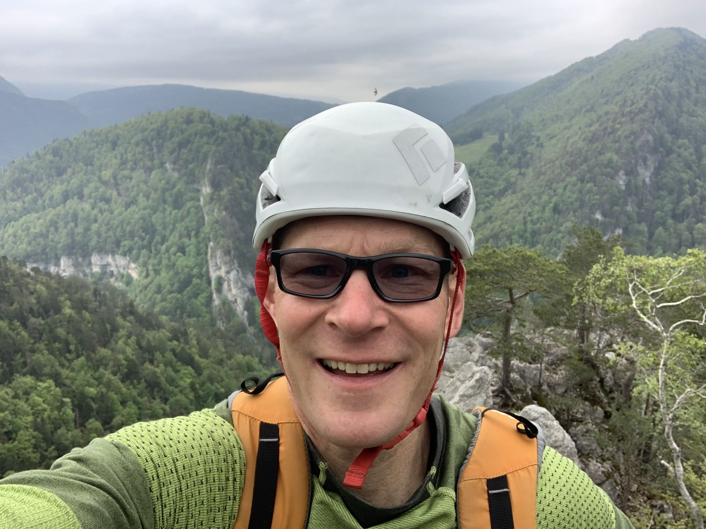Ein traumhaft schöner Jura-Grat, T6-, Stellen 3. Die Abseilstelle bin ich auf dem Band südseitig umgangen, das ist umschwierig, aber exponiert. Zum Abseilen reichen 15 m Seil sicher aus, geht so wohl einfacher. Die Angabe im Routenbeschrieb "der Grat verliert sich oben im Wald und wird uninteressant" kann ich so nicht teilen. Es hat bis zum Ende schöne Stellen, landschaftlich alles superschön, oben im Grat mit Aurikeln und einigen Knabenkrautexemplaren, ganz oben am Turm dann ganze Knabenkraut-Wiesen.