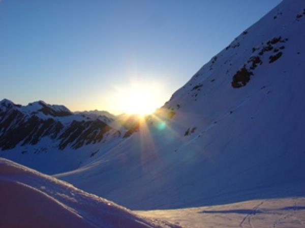 Sonne pur, wolkenlos und mit Bise kalt, durchwegs harter Schnee. Noch genügend Schnee im Tal. Super...