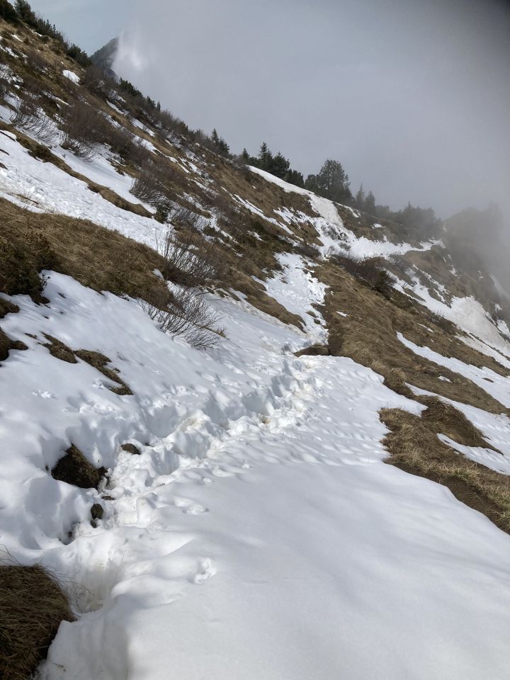 Im mittleren Teil noch etwas Schnee, welcher sehr weich war. Mit Bergschuhen war das im Aufstieg kein Problem und im Abstieg muss man entsprechend konzentrieren.