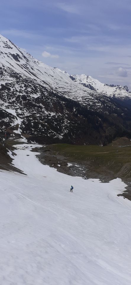 Noch durchgehend mit Ski ab Rauz möglich. Top Firn