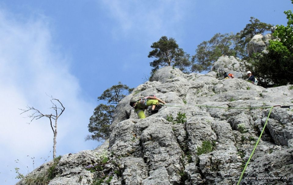 Die Route kommt langsam in die Jahre. An einigen Stellen wird der Fels speckig. Trotzdem immer noch eine befriedigende Klettertour.