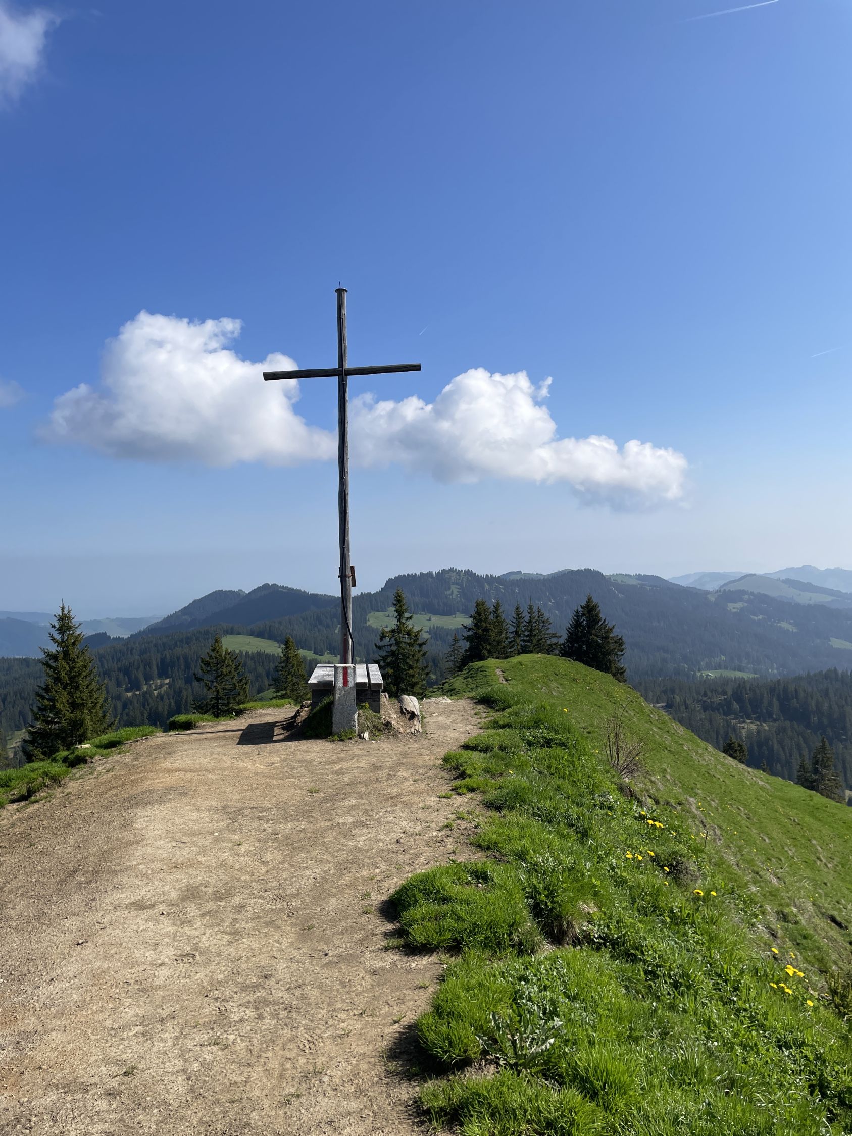 Herrlich, allein auf dem Gipfel bei Sonnenschein, Vogelgezwitscher und Kuhglocken.
