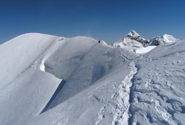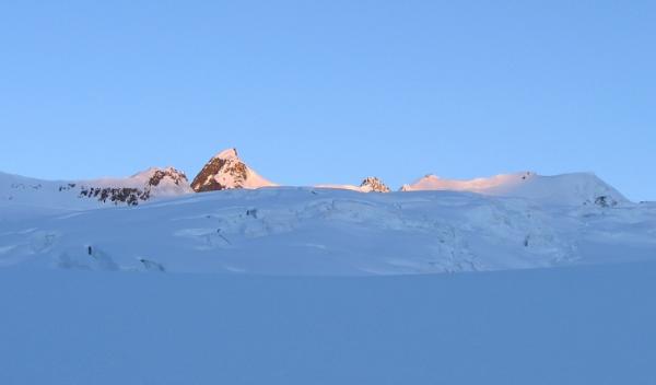 Von der Konkordiahütte um 4:30 Uhr zur Lötschenlücke marschiert. Von dort übers Anujoch auf den Südgrat und mit den Skis aufgebunden zum Gipfel aufgestiegen.