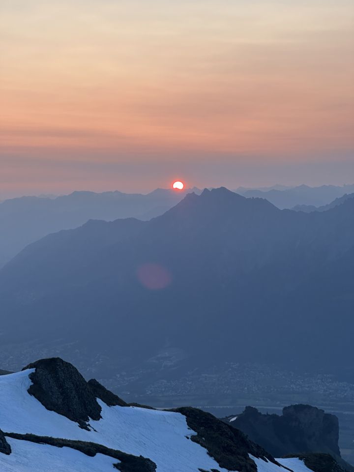 Chemmi noch teils geschlossene Schneedecke. 30m unterhalb des Gipfels ist ein steiles Schnee Feld welches entweder heikel umgangen werden kann oder direkt erstiegen wird. Ich war froh um die Stöcke. Ein Pickel schadet sicher nicht.