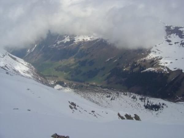 Bedeckte Nacht; Schnee zum Teil schon morgens um 7 feucht, jedoch meist noch tragfähig; Schnee ab Parkplatz durchgehend; Abfahrt zw. 10 und 11 Uhr; unten bereits recht tiefer durchfeuchteter Schnee, nicht mehr tragfähig.