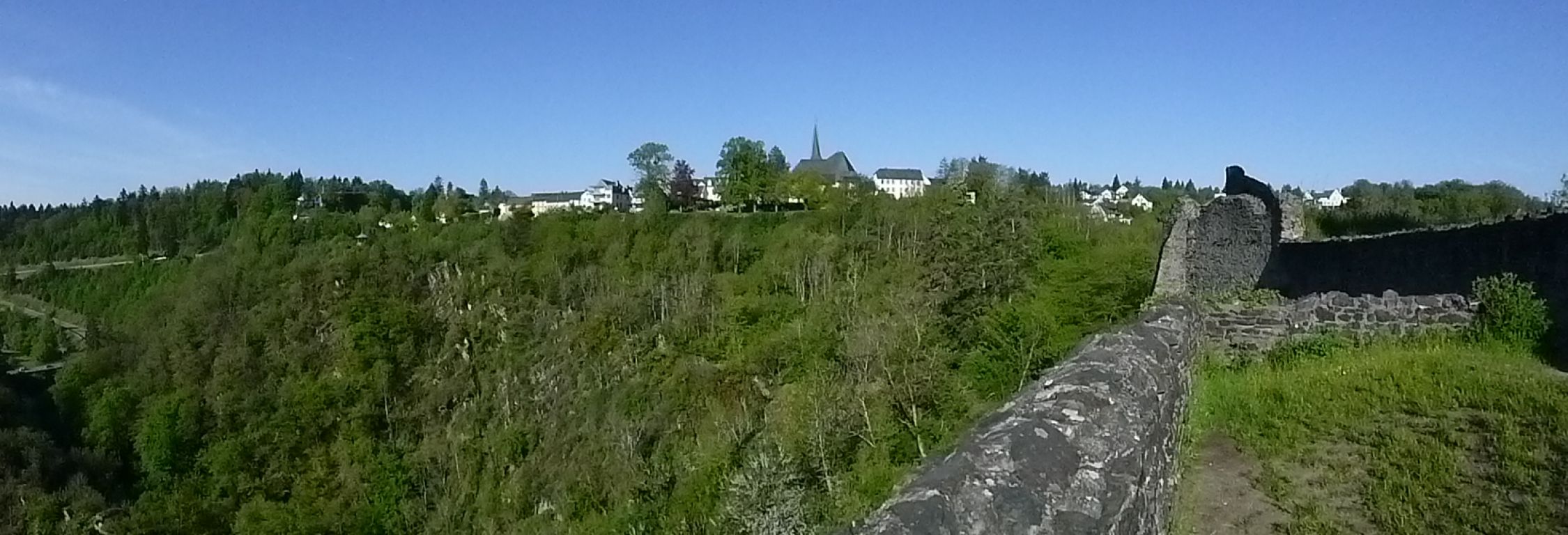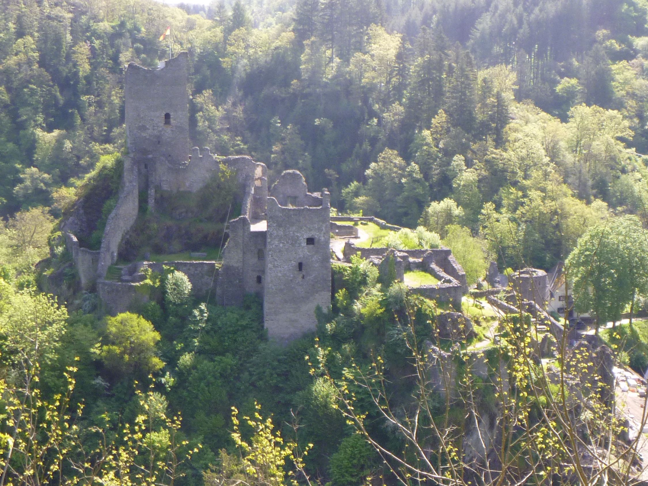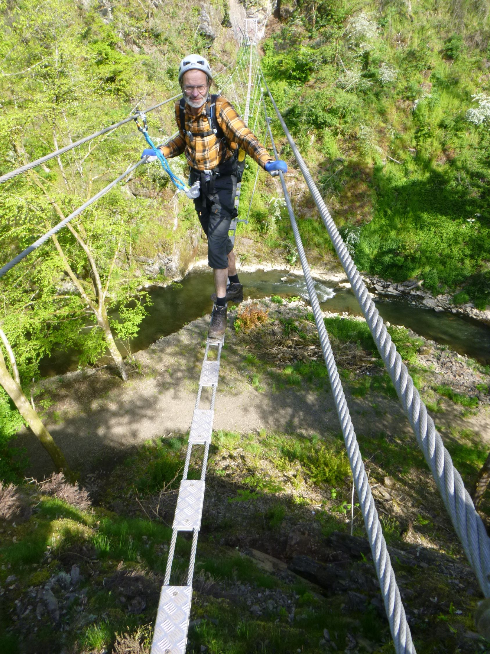 Auf dem Rückweg durch das Örtchen sah ich über 70 Klettersteigler aus verschiedenen Ländern in Richtung Einstieg pilgern. Bleibt zu hoffen, dass so ein Massenansturm auch den höheren Ansprüchen in der 3. Etappe genügen kann. Alle Parkplätze waren überfüllt. Parkplätze in Manderscheid beim Sonneck und in Niedermanderscheid bei der Niederburg kosten € 4,00 am Tag.