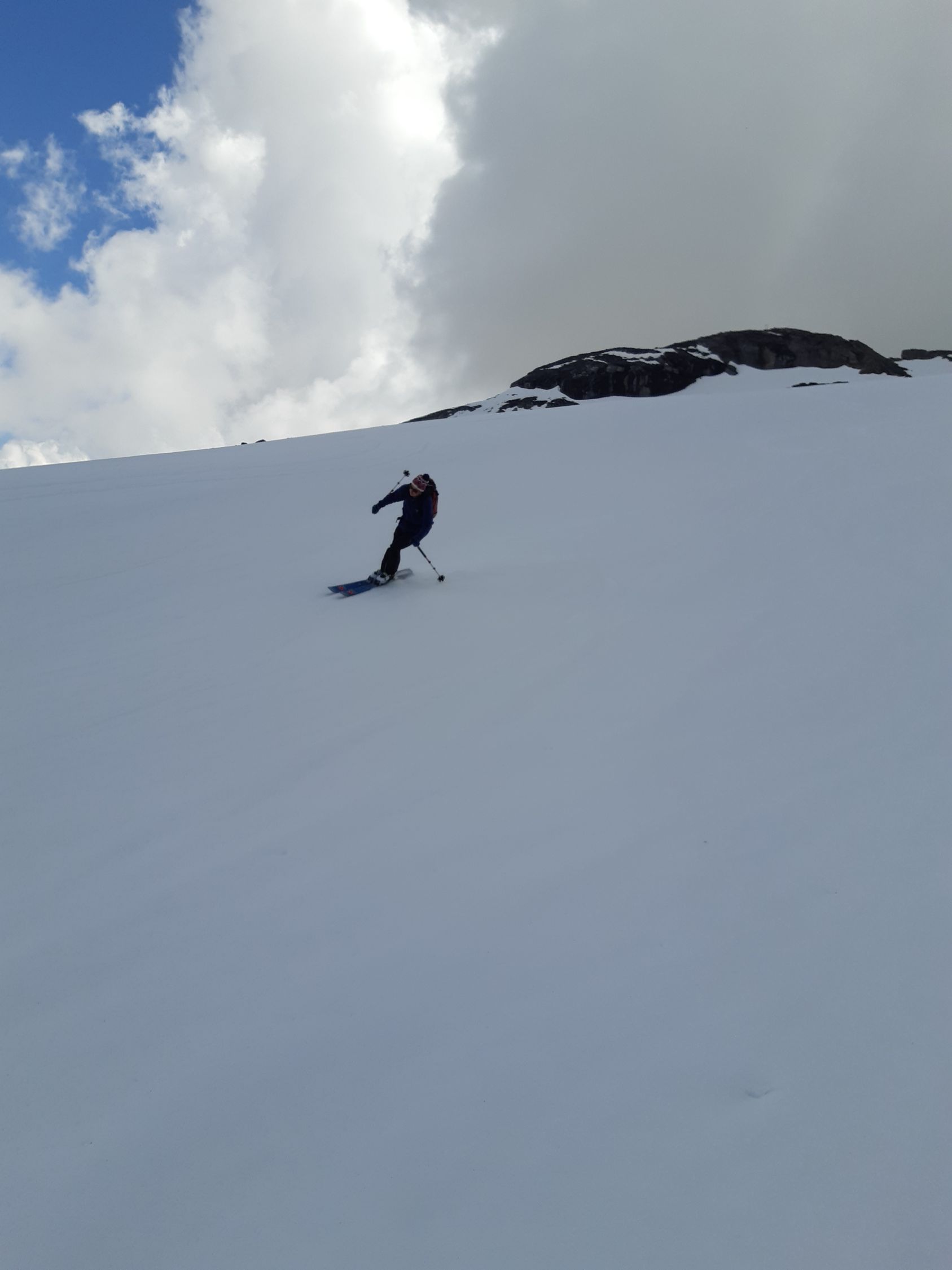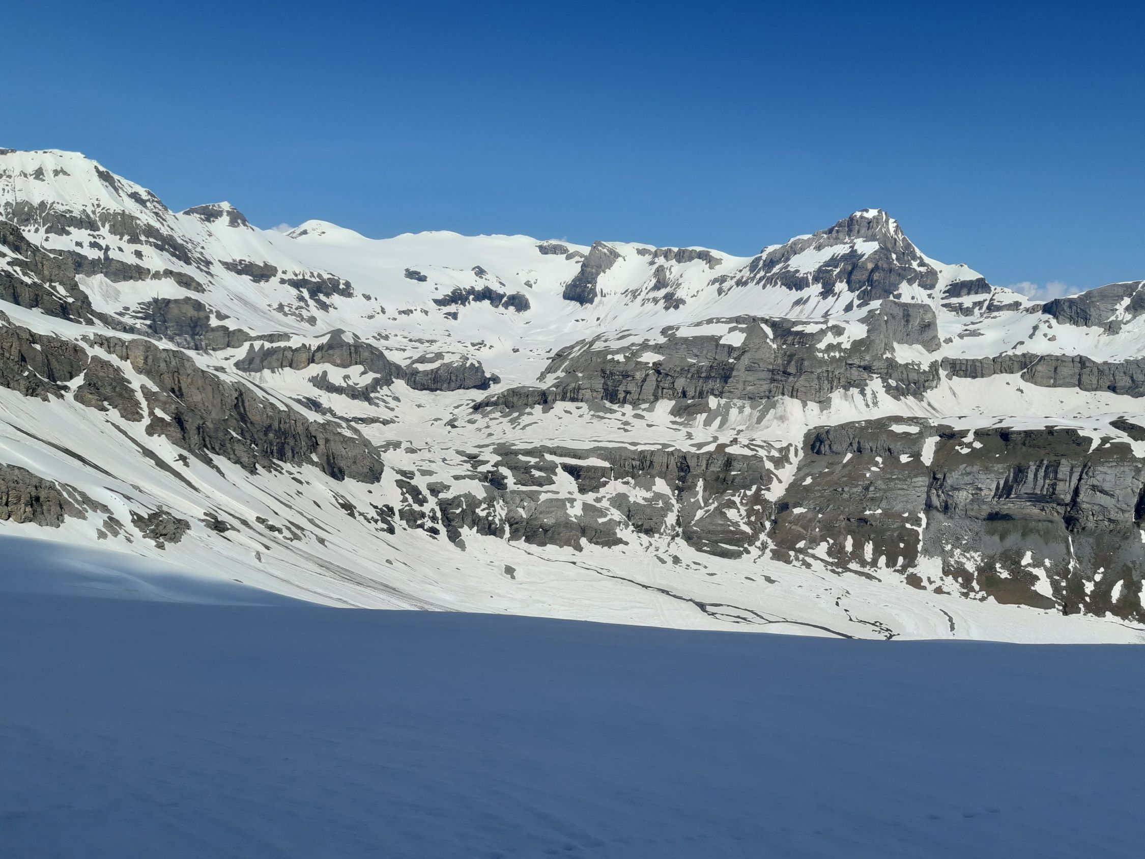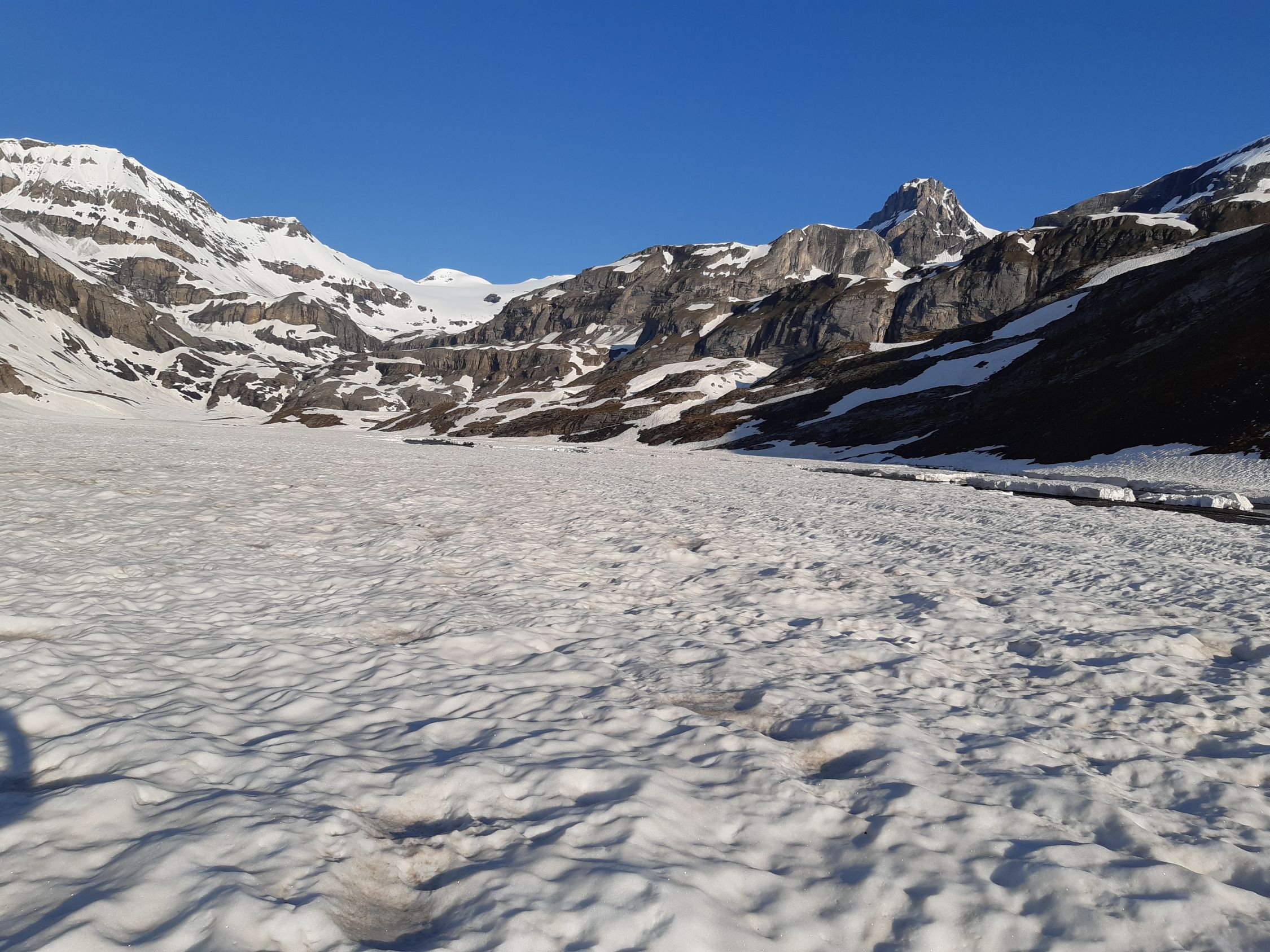 Noch genug Schnee für die nächsten Tage, oberhalb 2500 schöne glatte Schneedecke die um 12 Uhr schön aufgefirnt ist, genug Abstrahlung trotz abendlichen Gewitter, Wildstrubel, Steghorn, Rinderbraten Schwarzhorn ab Gemmipass noch machbar in den nächsten Tagen Bahn und Hotel offen