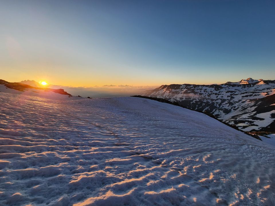 Start auf dem Parkplatz um 05.00 Uhr bei guten Verhältnissen. Genügend Schnee, gefroren bis oben zum Skidepot. Spur ist nicht vorhanden.