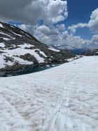 Sehr schön Bedingungen für eine frühlingstour! Wir haben die Skis bis zum circa 2450 m im Aufstieg getragen. Wegen gute Abstrahlung über Nacht war die Schnee fest und einfach zu fahren. Den Bach überqueren geht problemlos. Wir haben eine "sportlich" Route auf dem Gipfel über felsen nehmen, weil wir einen Richtungsfehler vorher gemacht haben. Keine schwierig Gletscherspalten zu sehen, dass man nicht einfach umgehen kann. Überraschenderweise schönen Schnee im abfahrt. Im Abstieg kann man mit etwas Vertrauen fast bis zum Eisgrotto ski fahren.