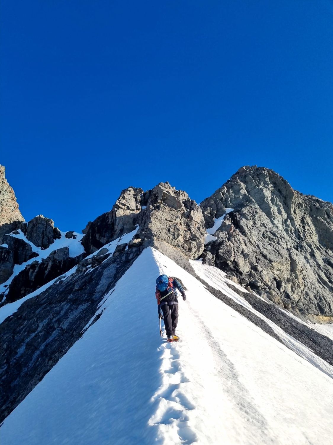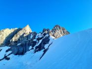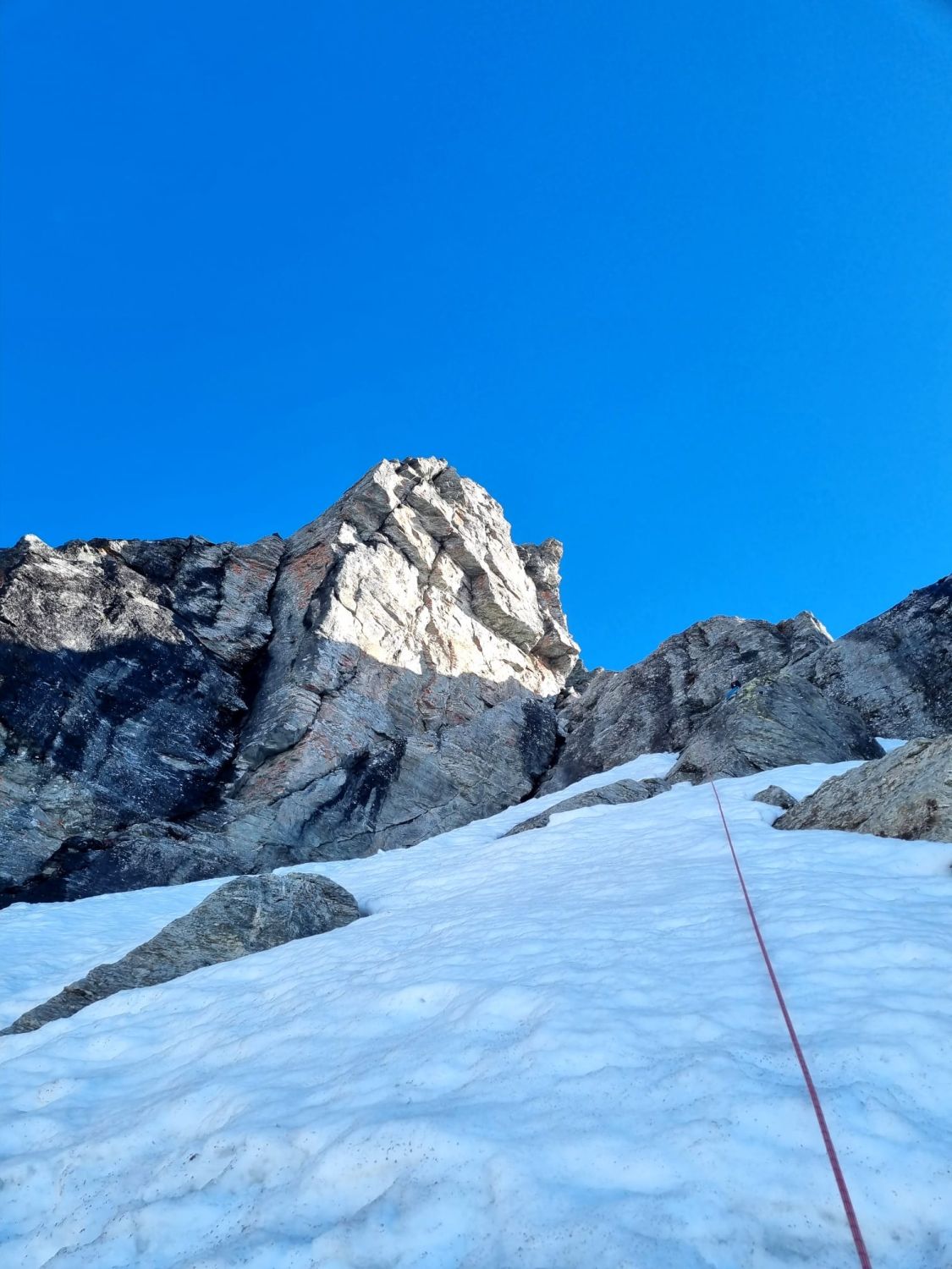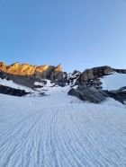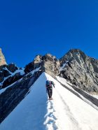 Auf der Tour liegt noch Schnee, was die Schwierigkeiten leicht erhöht, Route lässt sich jedoch gut begehen. Ich denke die meisten Stände und BH sind schneefrei od. werden es bald sein. Im Auf- und Abstieg zum Mittelgrat noch viel Schnee zu finden, daher lohnt es sich kalte Nächte abzuwarten und früh zu starten.