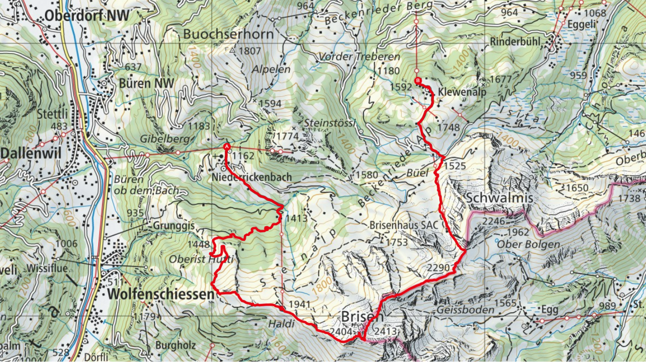 Brisen Gratroute: Brändlen-Haldigrat-Brisen-Glattgrat-Risetenstock-Klewenalp