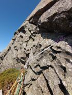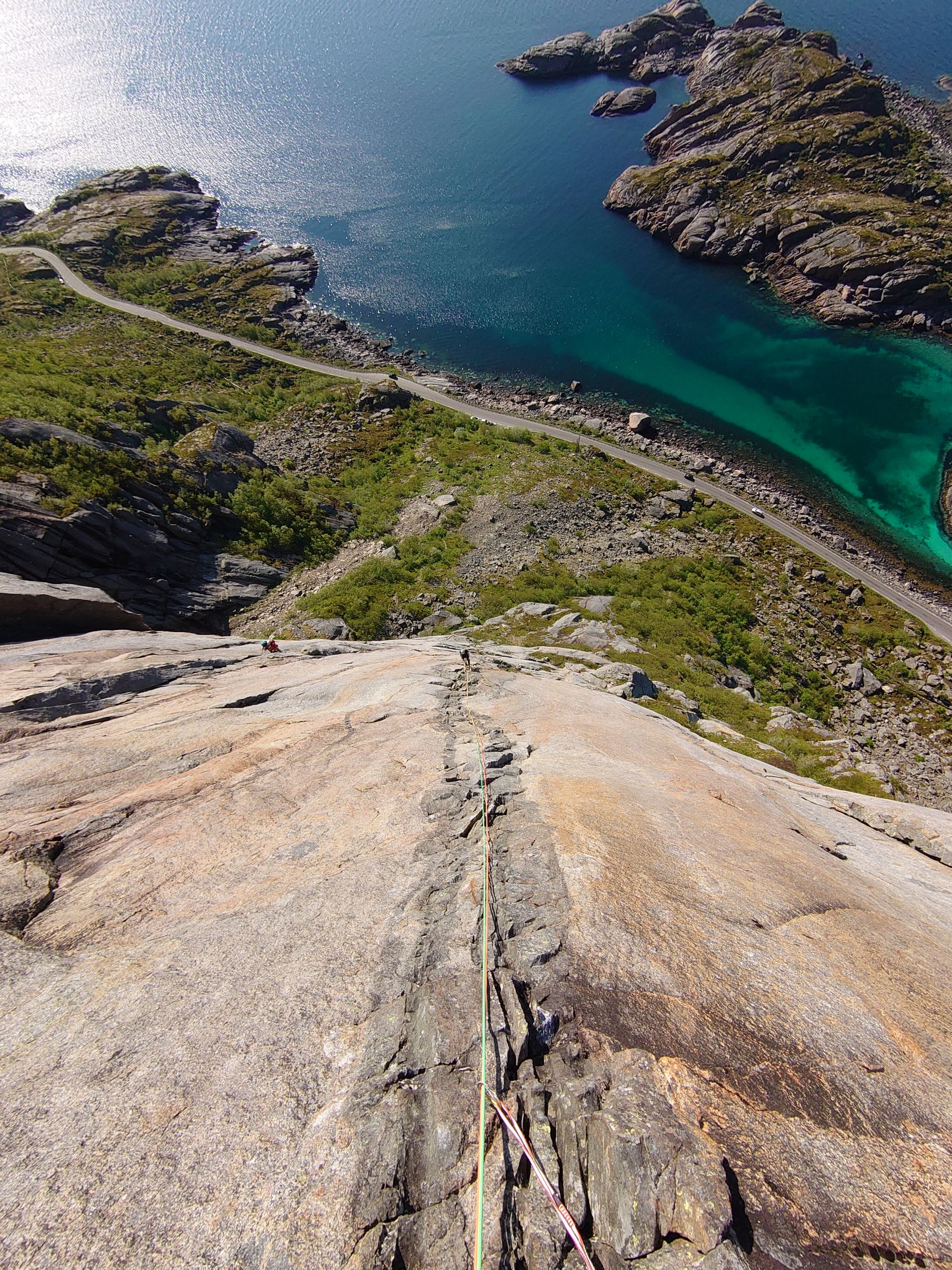 In der letzten Seillänge ging ich die 60m bis Storhylla fast komplett aus. Man kann aber problemlos schon früher Stand machen.