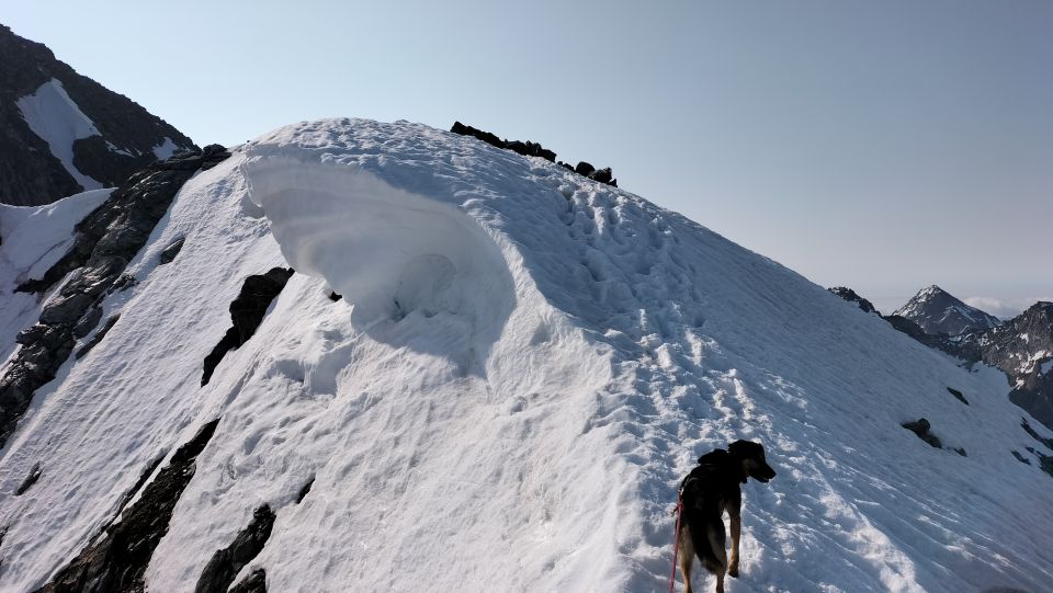 Start der Tour am 6.25 Uhr beim Furkatunnel , das Wetter sehr schön immer noch sehr kühl, nach kurzem Skitragen konnten die Ski montiert werden , mit etwas Fantasie hoch zum Ende der Militärstrasse, dann eine geschlossene Schneedecke die durchgefrohren war, leider heute schon viel Büsserschnee auf der Route, der Fussaufstieg zum Grat war gut zum hochsteigen, oben lauern Wechten, am Gipfel leichter Föhn, in Richtung Süden viele Wolken, die Abfahrt war heute kein Vergnügen