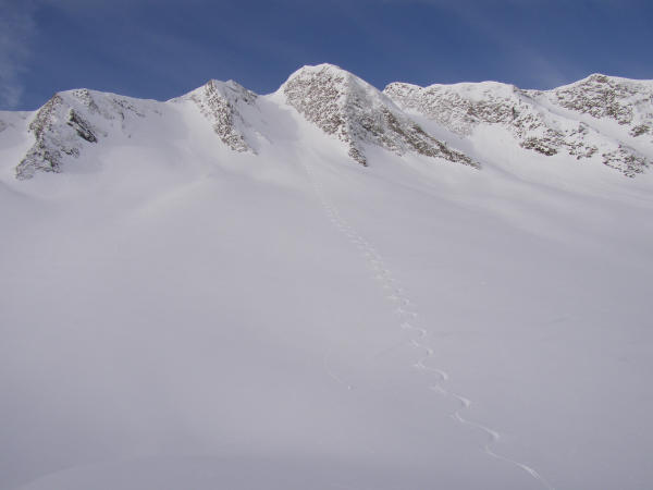 Ich musste am Morgetenpass Spuren brauchte dazu die Schaufel,jetzt ist ein schöner weg.Beim Ostcouloir ist die einfahrt sehr steil.Sonst hat sich der Schnee sehr gut verfestigt.Abfahrten Pulver gut