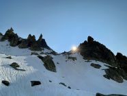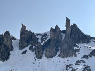 Im Vergleich zum letzten Jahr liegt noch viel mehr Schnee. Durch das ist der Zustieg mühsamer, weil man immer wieder einsinkt. Ansonsten bester Fels, trocken und angenehme Temperatur.