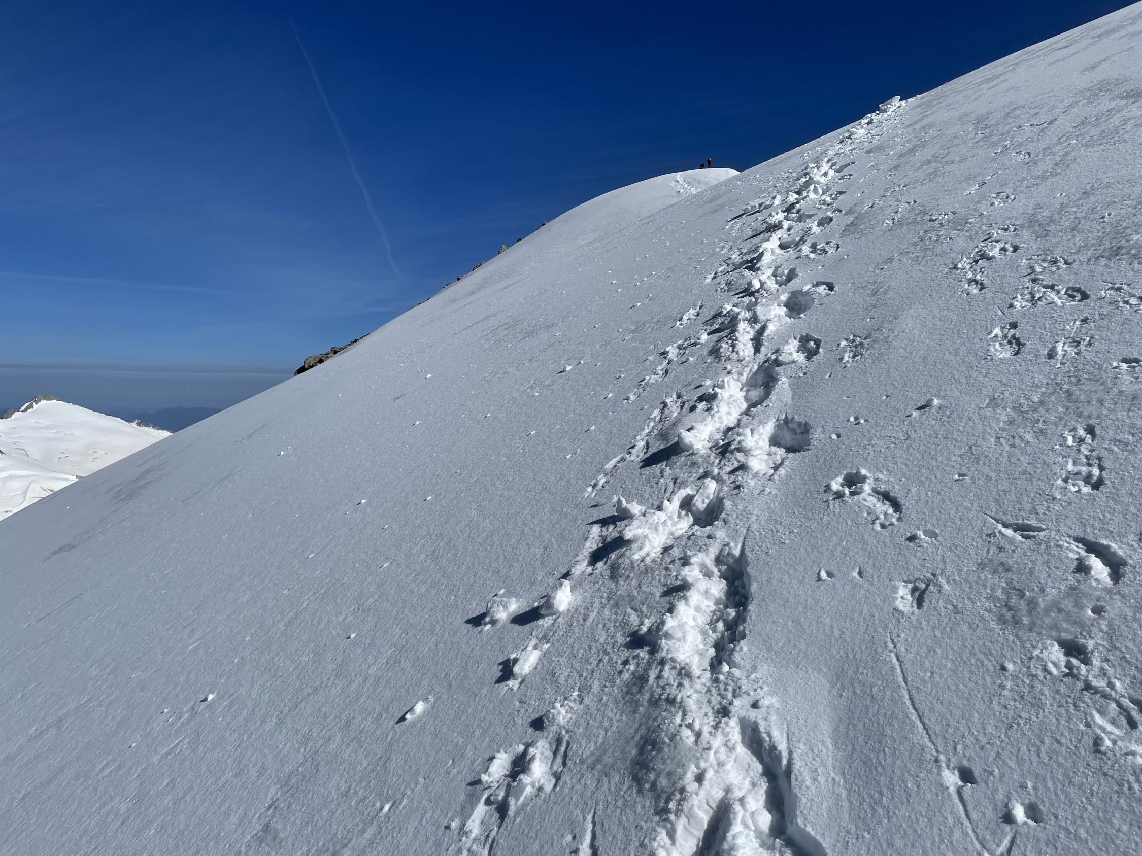 Die Schneefelder weiter oben sind hart, verfirnt und perfekt zu begehen.