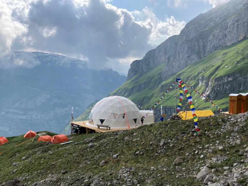 Wegen dem Umbau der Glärnischhütte wurde ein Basecamp erstellt mit komfortablen Zweierzelten, bequemen Schlafmatten und warmen Schlafsäcken, einem Küchen- und Esszelt und einer praktischen WC-Anlage - ein tolles Erlebnis.