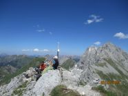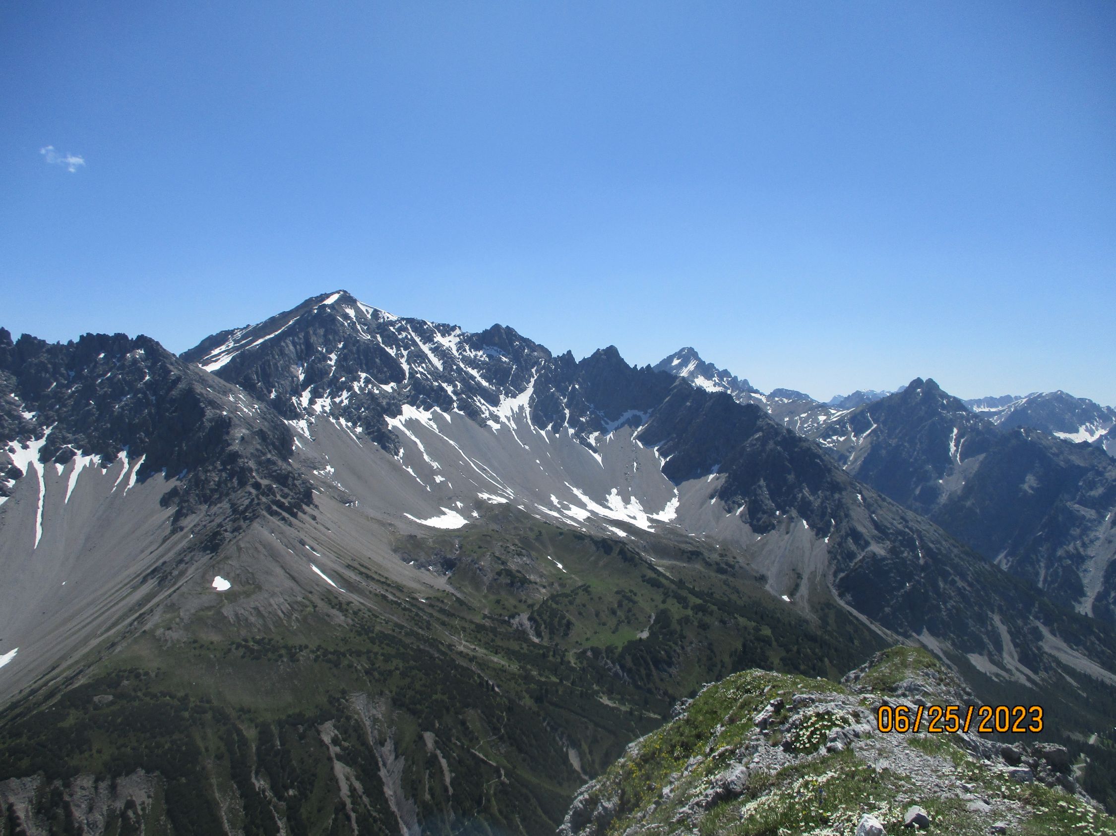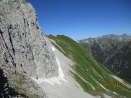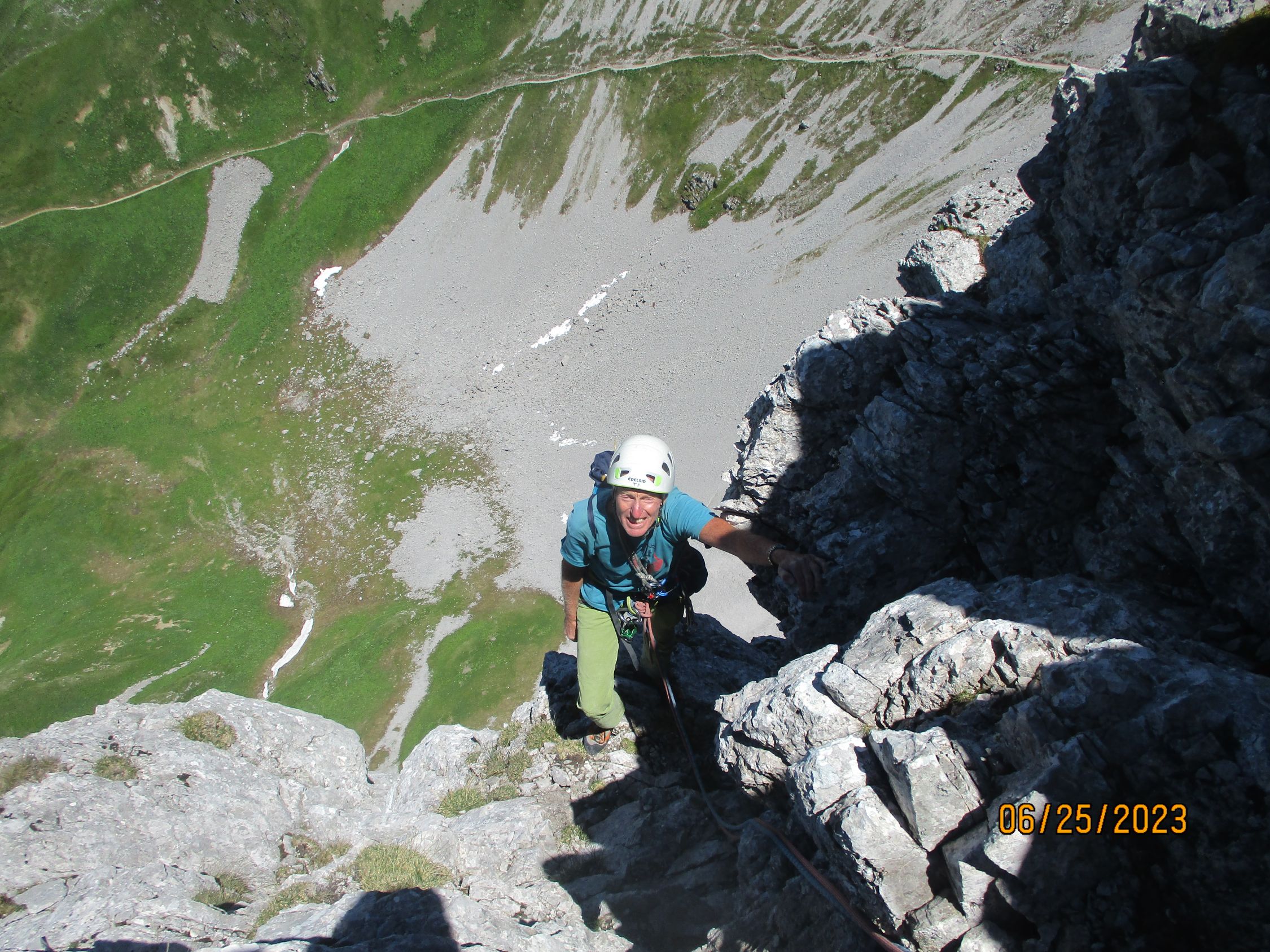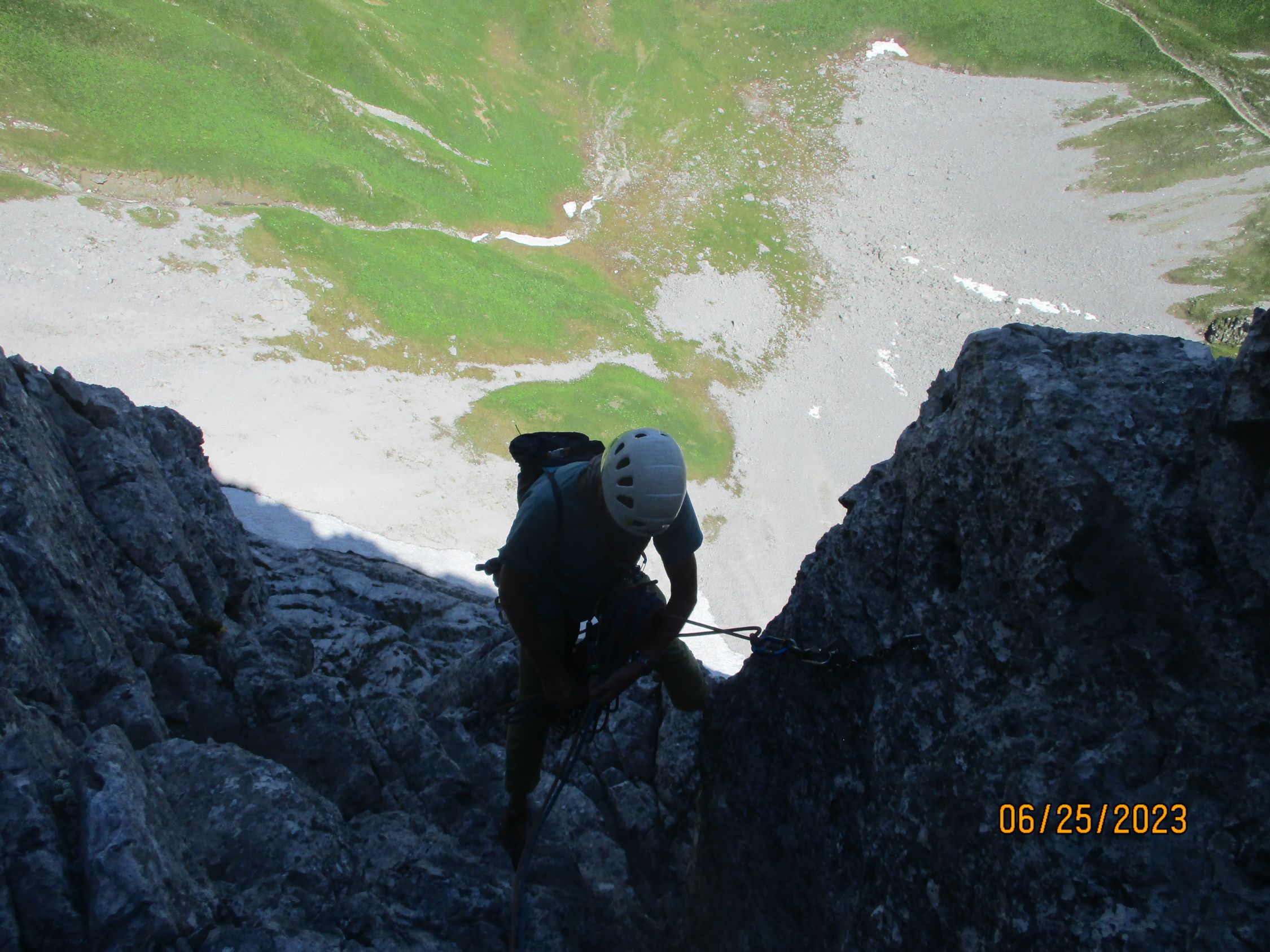 Da Bernd und ich das letzte Mal durch den Terrassenweg gegangen waren, haben wie heute der Direkten Nordwand den Vorzug gegeben. Wie erwähnt, waren vor uns bereits zwei Seilschaften, hinter uns noch eine weitere. Alles ging ohne Gedränge und vor allem auch ohne Steinschlag vonstatten. Vladi und Fabian hatten den Terrassenweg heute für sich.