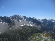 Praktisch identische Verhältnisse, wie bei unserem ersten Besuch am 05.07.2020 (siehe mein Eintrag hier im Gipfelbuch). Das Schneefeld war zum Einstieg in die Direkte Nordwand hin bereits von zwei vor uns eingestiegenen Seilschaften gespurt, und ist es jetzt auch zum Terrassenweg, seit Vladi und Fabian dort waren. Achtung. eine dritte Spur weiter oben, auf Richtung Steinjöchl zu, geht zum Einstieg der Route "Bingo". Im Bergschrund zwischen Schneefeld und Wand ließ es sich wiederum bequem stehen und angeschirren.